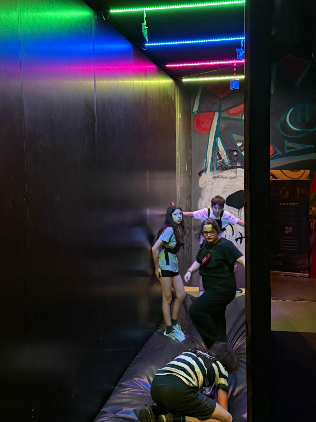 Futurento není klasická úniková hra – je to interaktivní zábavní aréna, kde týmy řeší různé úkoly, překonávají překážky a pracují společně na dosažení cíle. Hráči dostanou herní zařízení, s nimž postupují jednotlivými stanovišti, řeší logické i fyzické výzvy, navigují se v prostoru a sbírají body. Čekají je tu trampolíny, laserové části, hádanky, koordinace pohybu i týmová strategie.