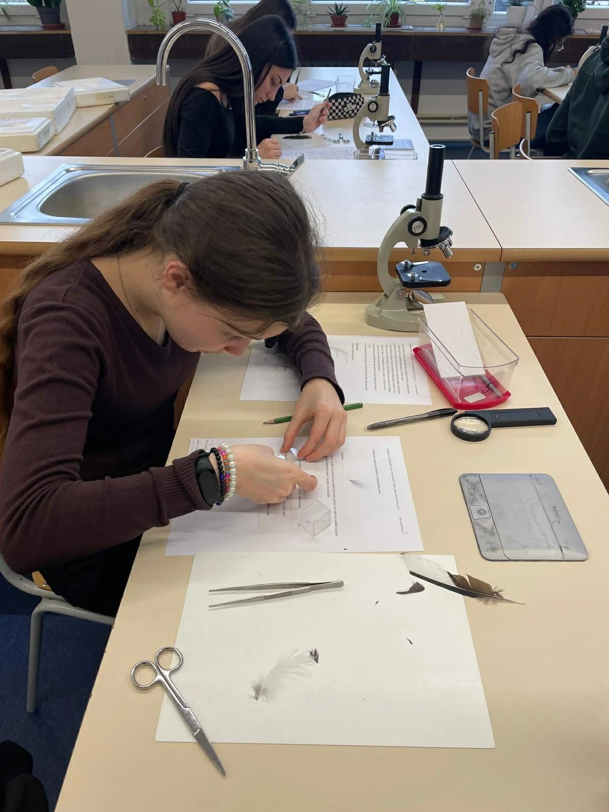 Kategorie C, určená pro žáky 8. a 9. ročníků, proběhla 4. února. I zde soutěž odstartoval vědomostní test a poznávačka, tentokrát však s náročnějšími otázkami odpovídajícími vyšší úrovni znalostí. V laboratorní části se žáci věnovali pozorování prachového peří, jehož struktura i funkce patří k fascinujícím tématům zoologie.