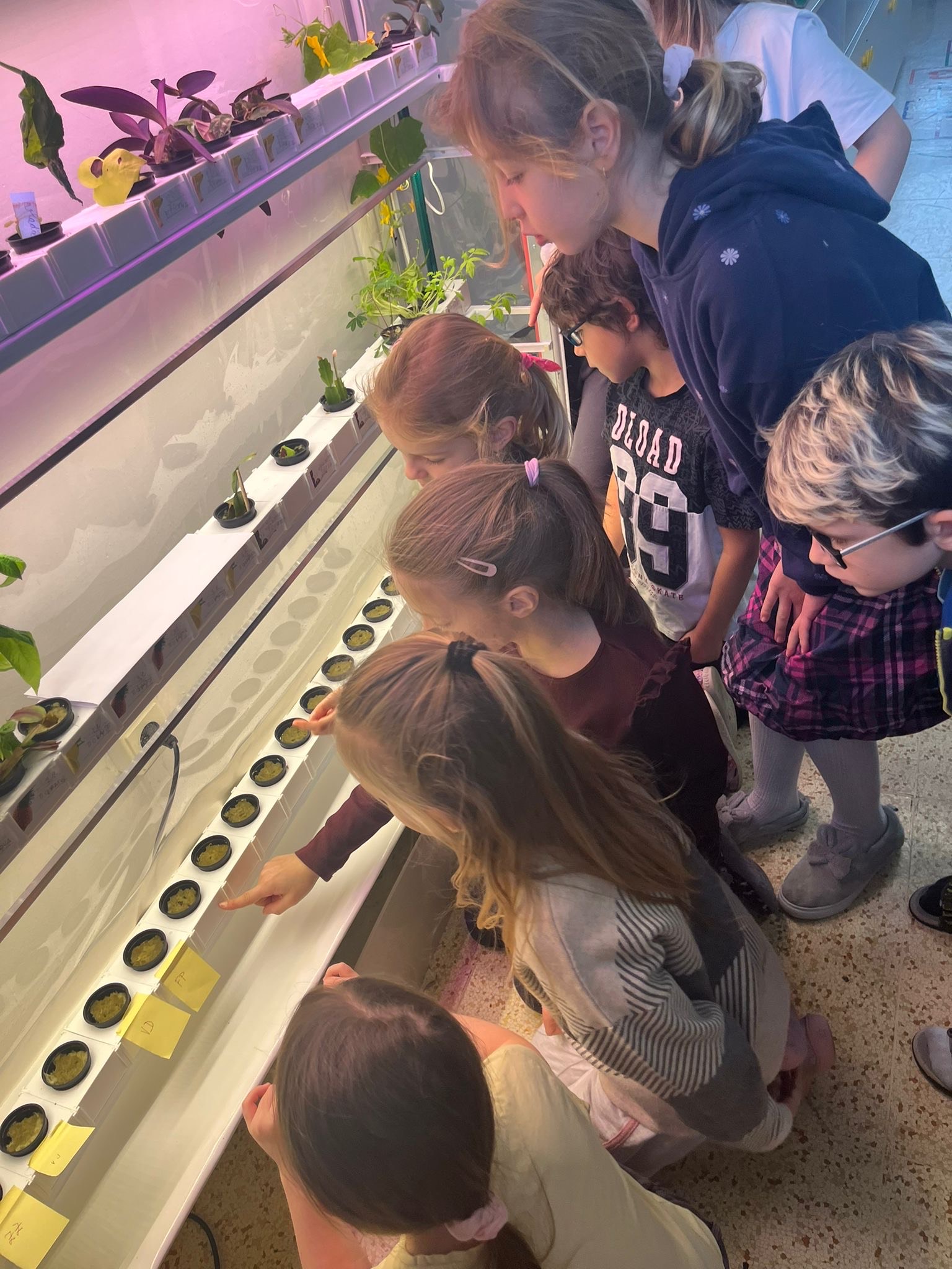 Ve 2. C proběhl pokus s pěstováním rostlin bez hlíny. Děti se seznámily s pojmem „hydroponie“. Společně pozorujeme růst rostlin a učíme se, co je pro život potřeba.