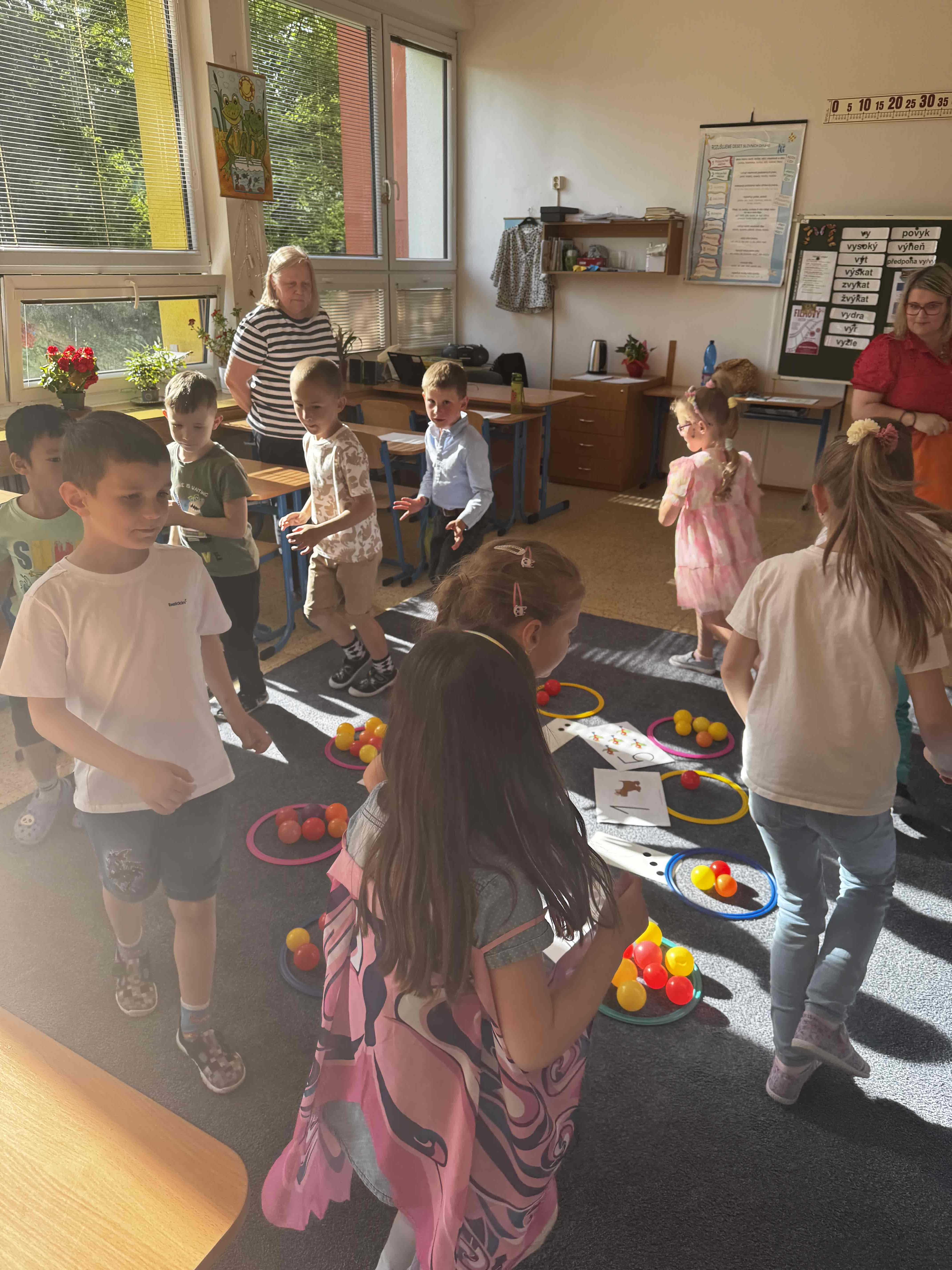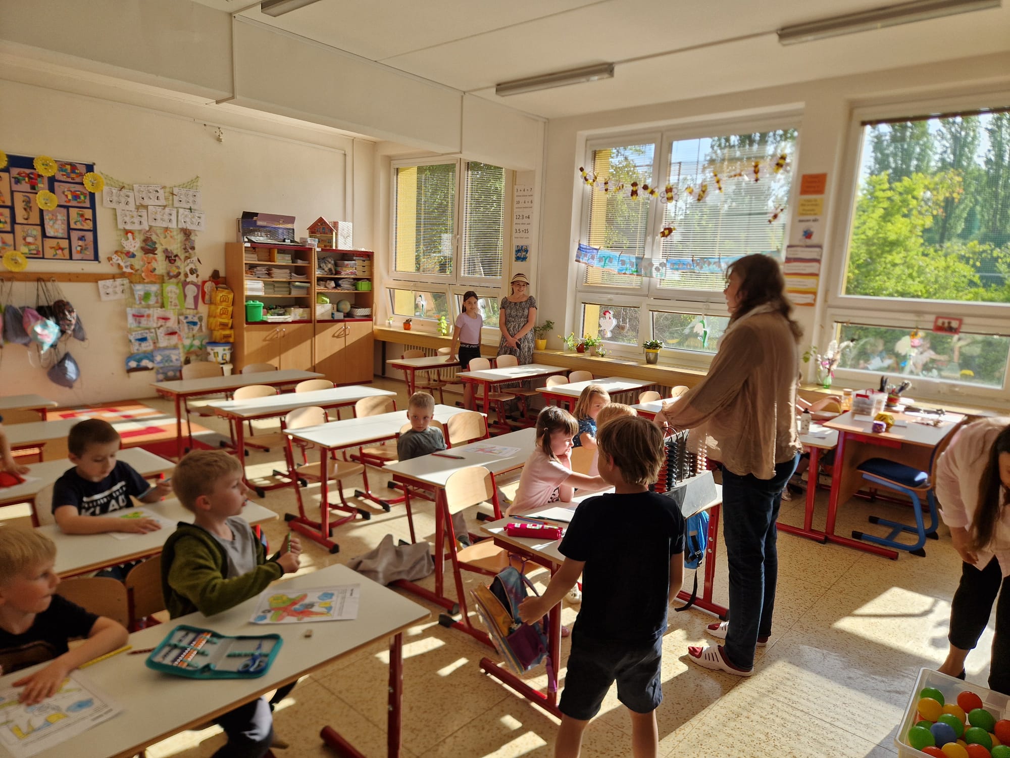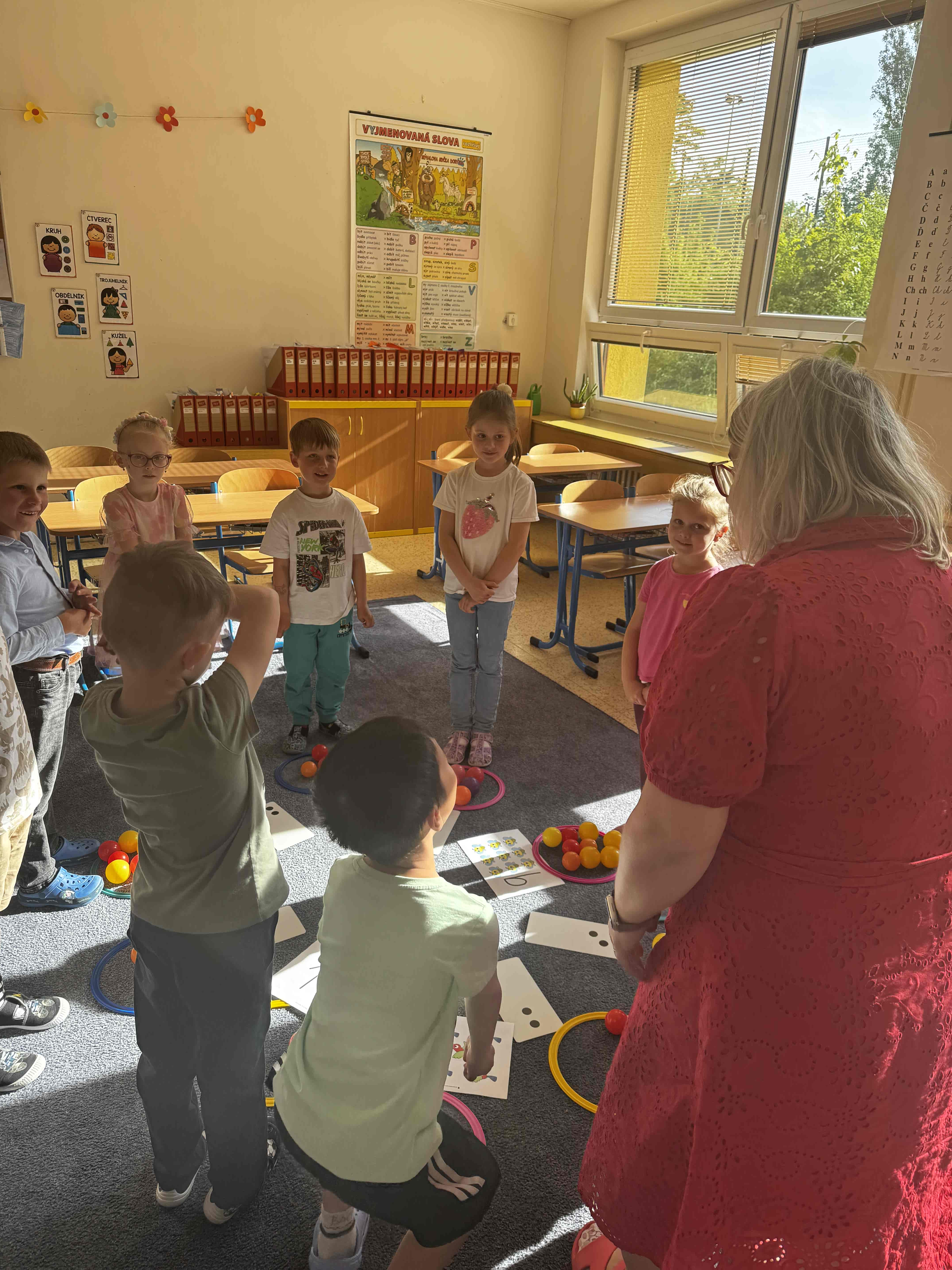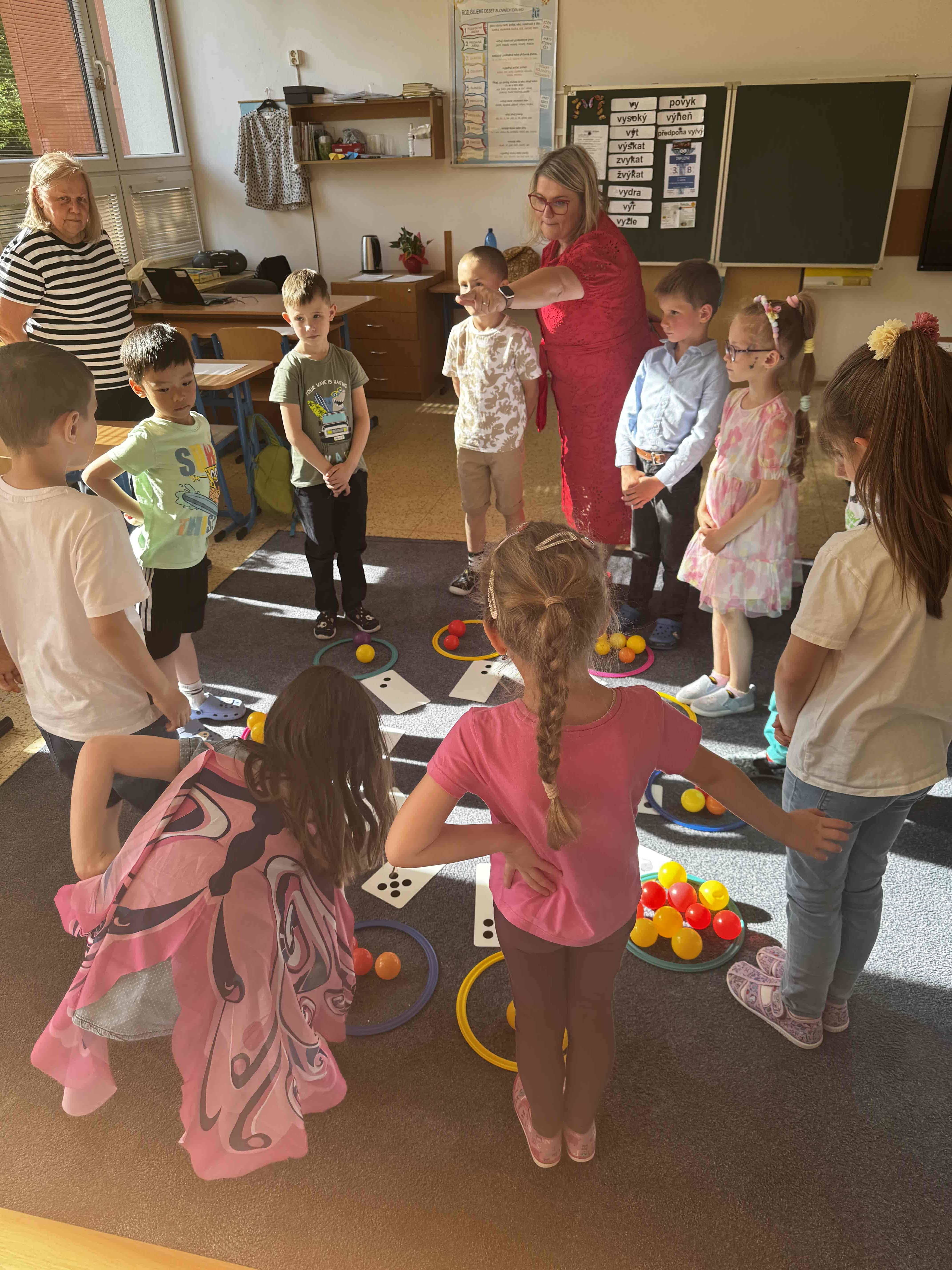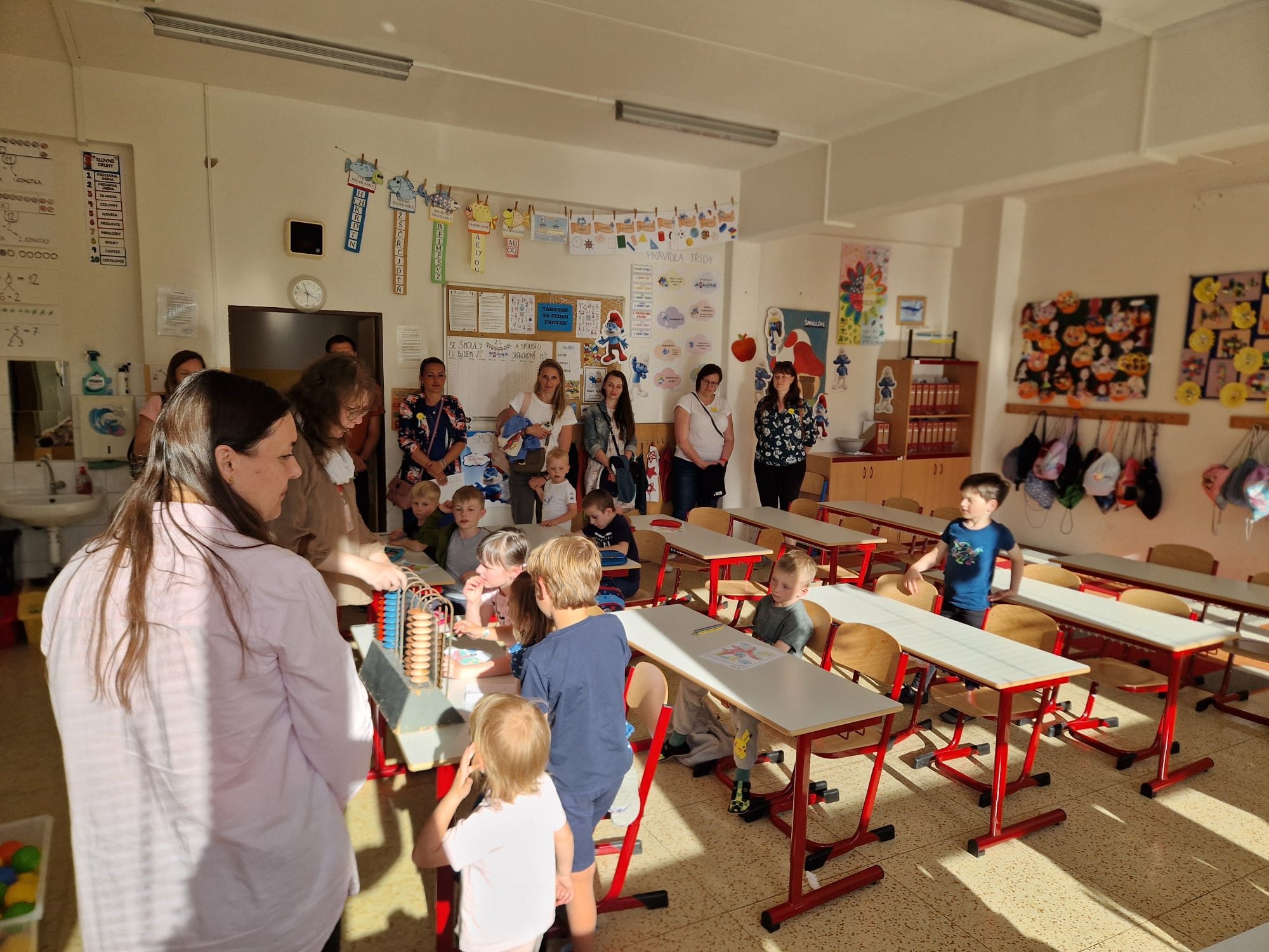 Děti pracovaly ve dvou třídách. V jedné se seznamovaly s matematikou pomocí interaktivní tabule, hrou na autobus či na molekuly, a dokonce si zkusily i matematický diktát. Ve druhé učebně počítaly se Sovičkou pomocí barevných balónků a kostek s čísly a tečkami. Ve skupinkách se střídaly na stanovištích, plnily různé matematické úkoly a pracovaly na pracovních listech.