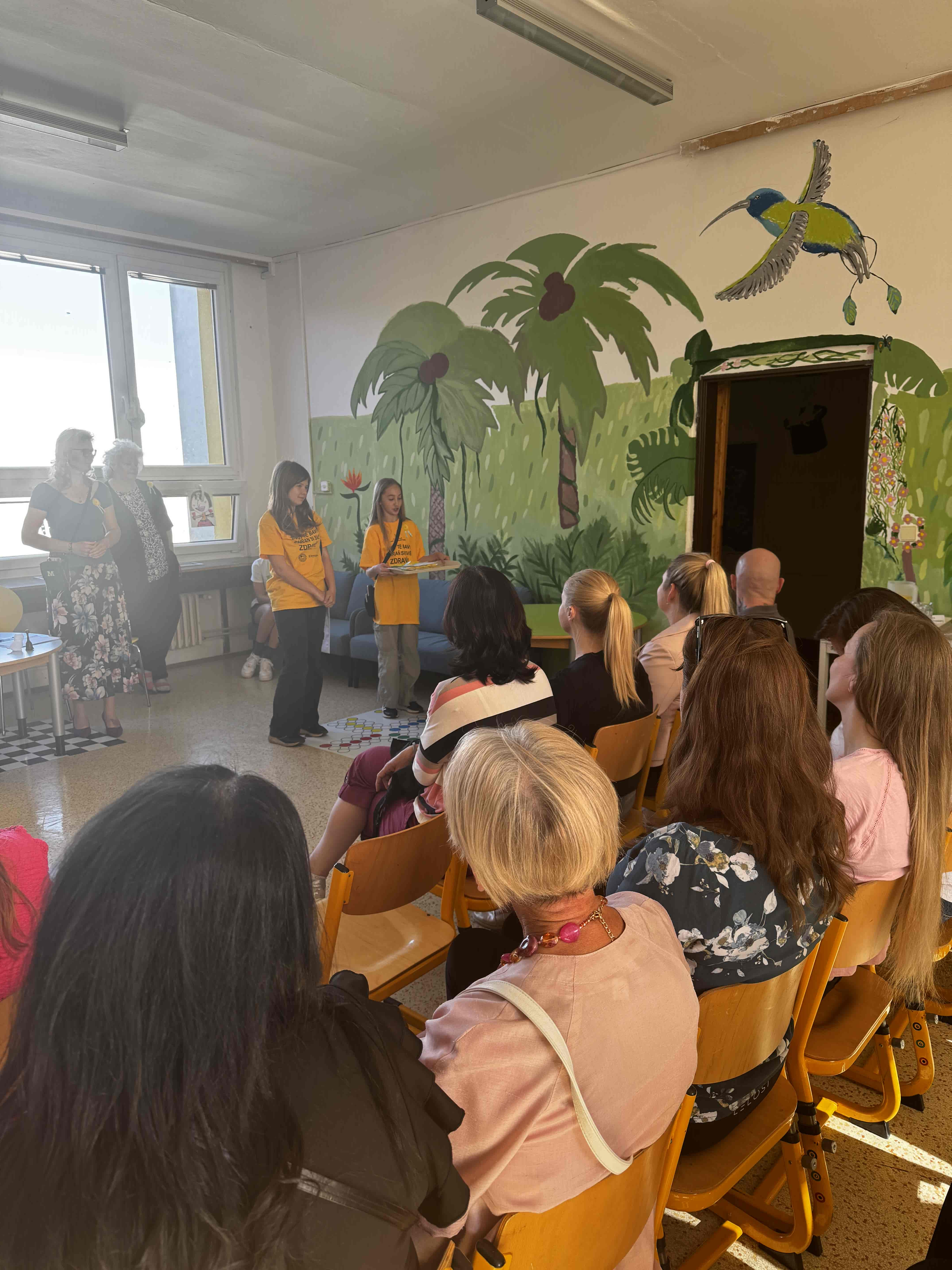 Na školičku zavítal i žákovský parlament, který představil svou činnost a nabídl rodičům k zakoupení květinu na podporu léčby rakoviny.