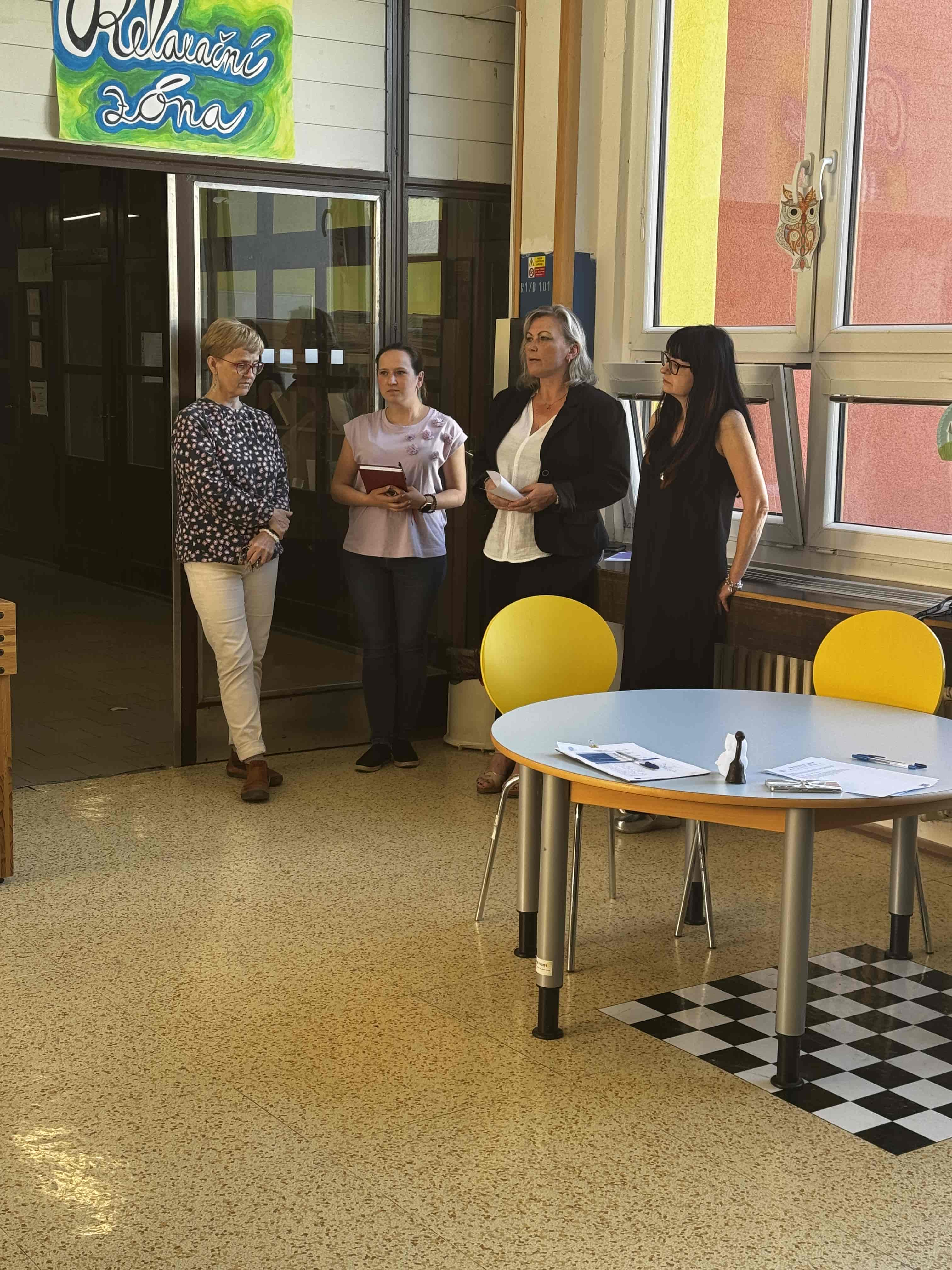 V klidové zóně bylo zatím rodičům představeno poradenské pracoviště naší školy. O jeho činnosti pohovořily sociální pedagožka, výchovná poradkyně, speciální pedagožka a metodička prevence.
