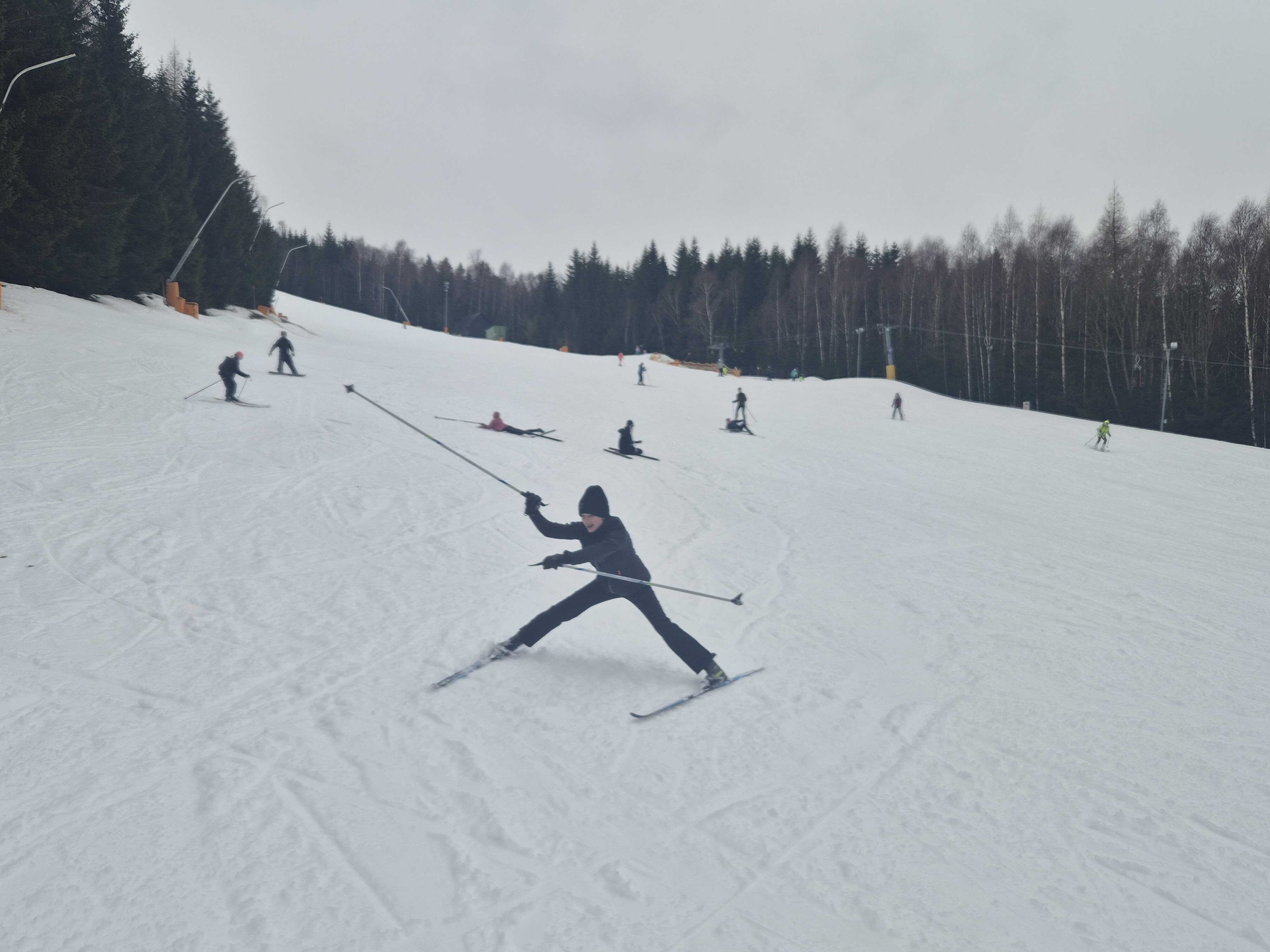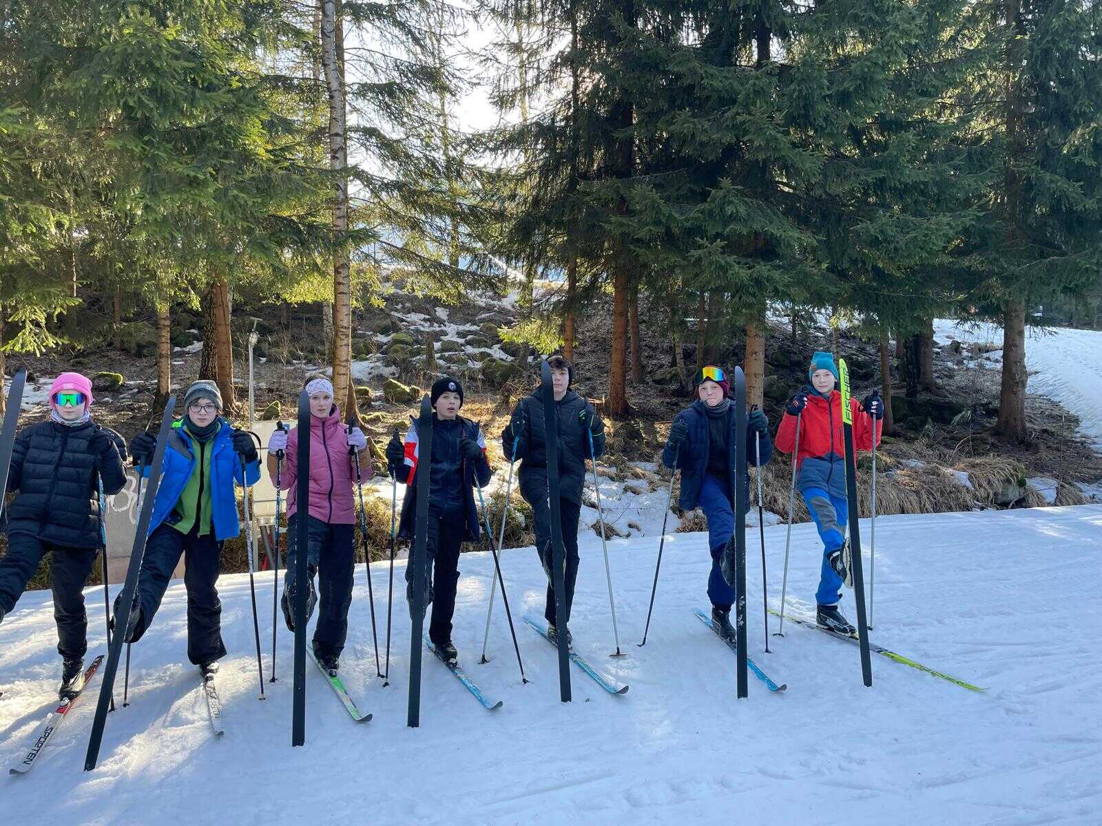 Žáci sedmých tříd tráví tento týden na lyžařském kurzu v Harrachově. Výcvik i doprovodný program probíhají bez komplikací, děti si postupně zlepšují techniku a užívají si krásné zimní podmínky. Atmosféra je výborná a všichni jsou v pořádku.