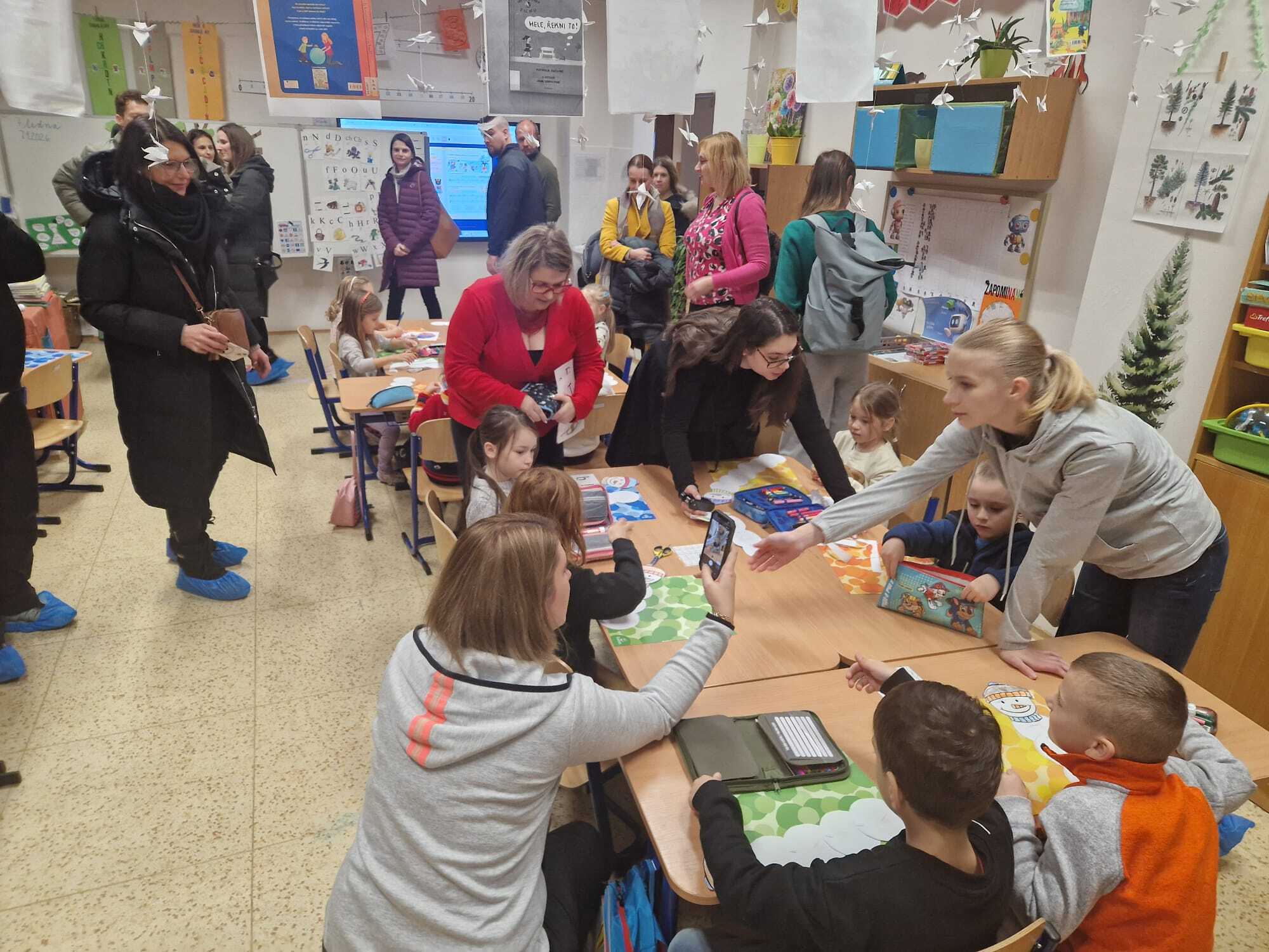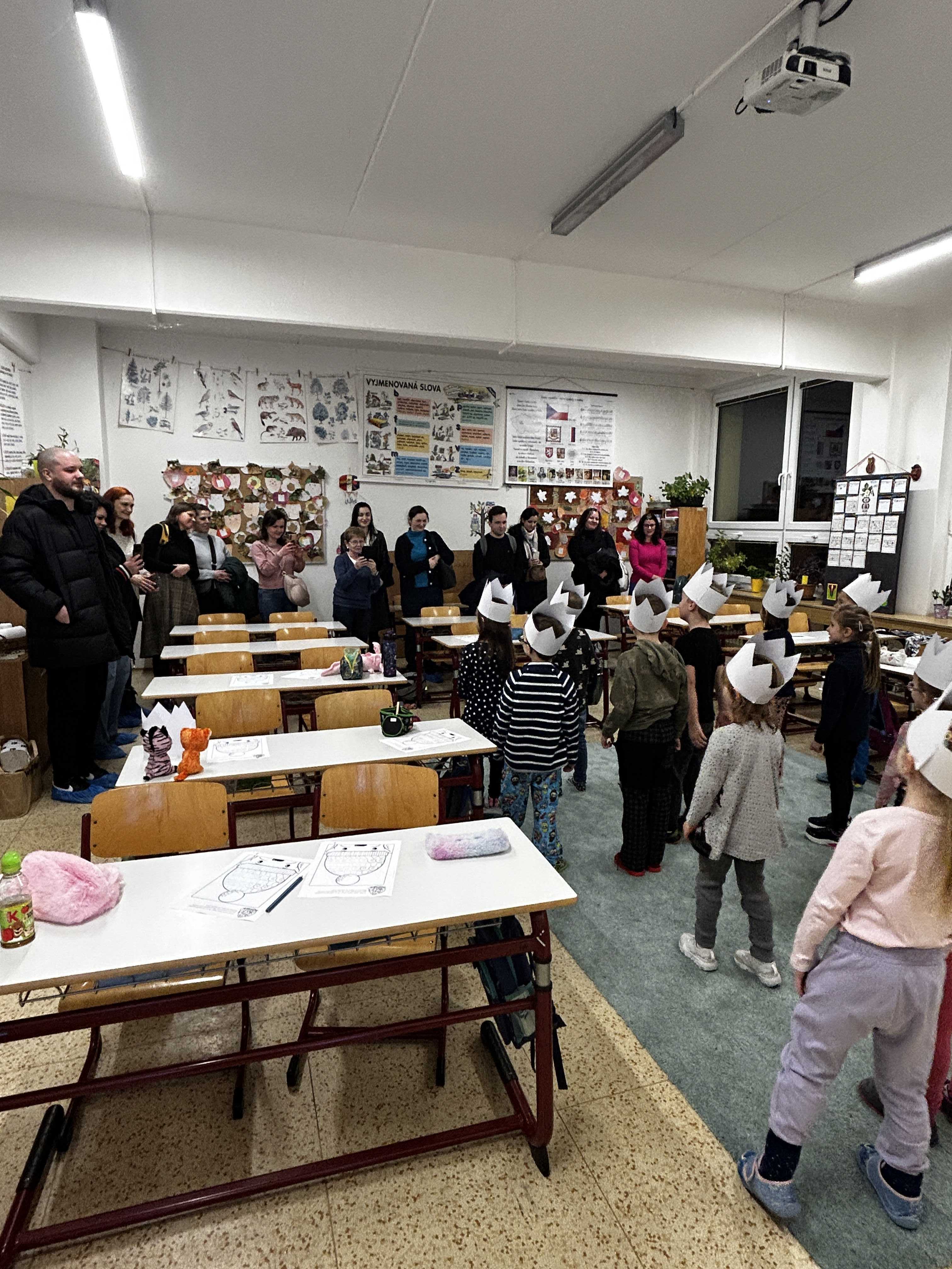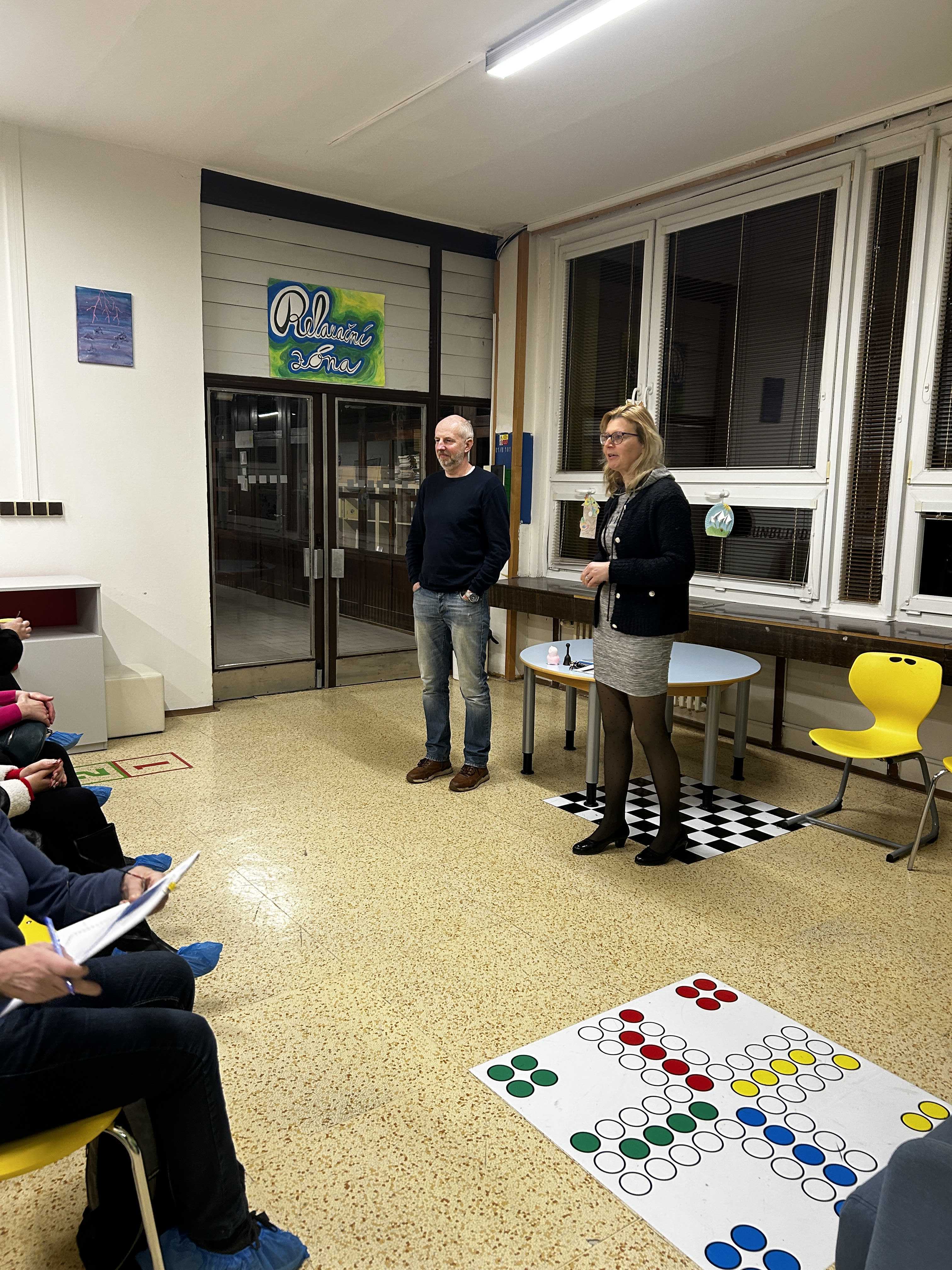 S rodiči si mezitím povídala paní zástupkyně Michaela Šimánková a pan ředitel Petr Neuvirt. Seznámili je se zápisem žáků do prvních tříd, který proběhne 5. 2. 2026 od 13.00 do 18.00 hodin a 6. 2. 2026 od 13.00 do 17.00 hodin. Zaměřili se na formální i motivační stránku zápisu a zmínili také změny v letošním roce týkající se odkladů školní docházky. Rodičům představili vizi školy, která se zaměřuje na diagnostiku a vzdělávání nadaných a mimořádně nadaných žáků. Rodiče rovněž pozvali na Den otevřených dveří, který se uskuteční 27. 1. v dopoledních i odpoledních hodinách.