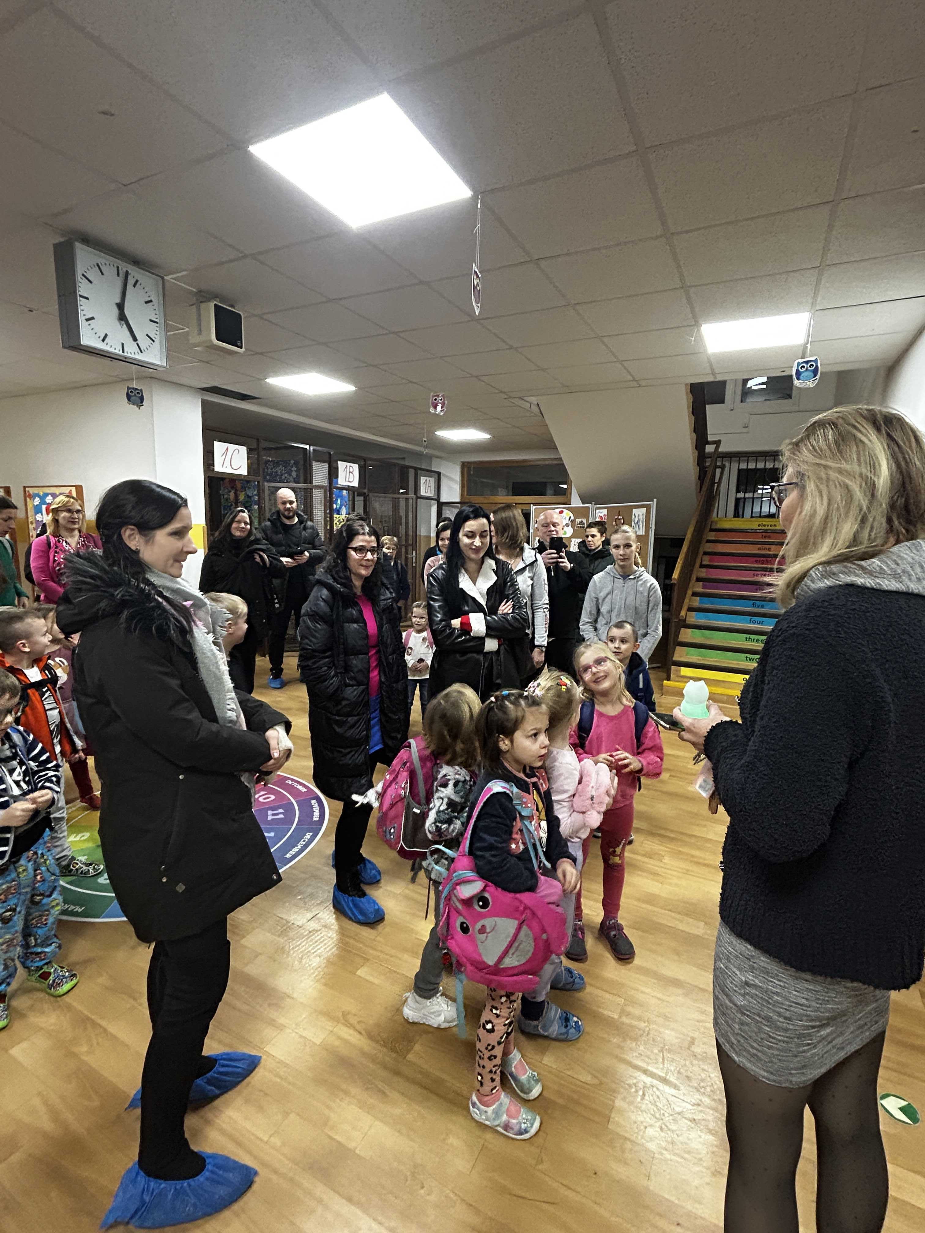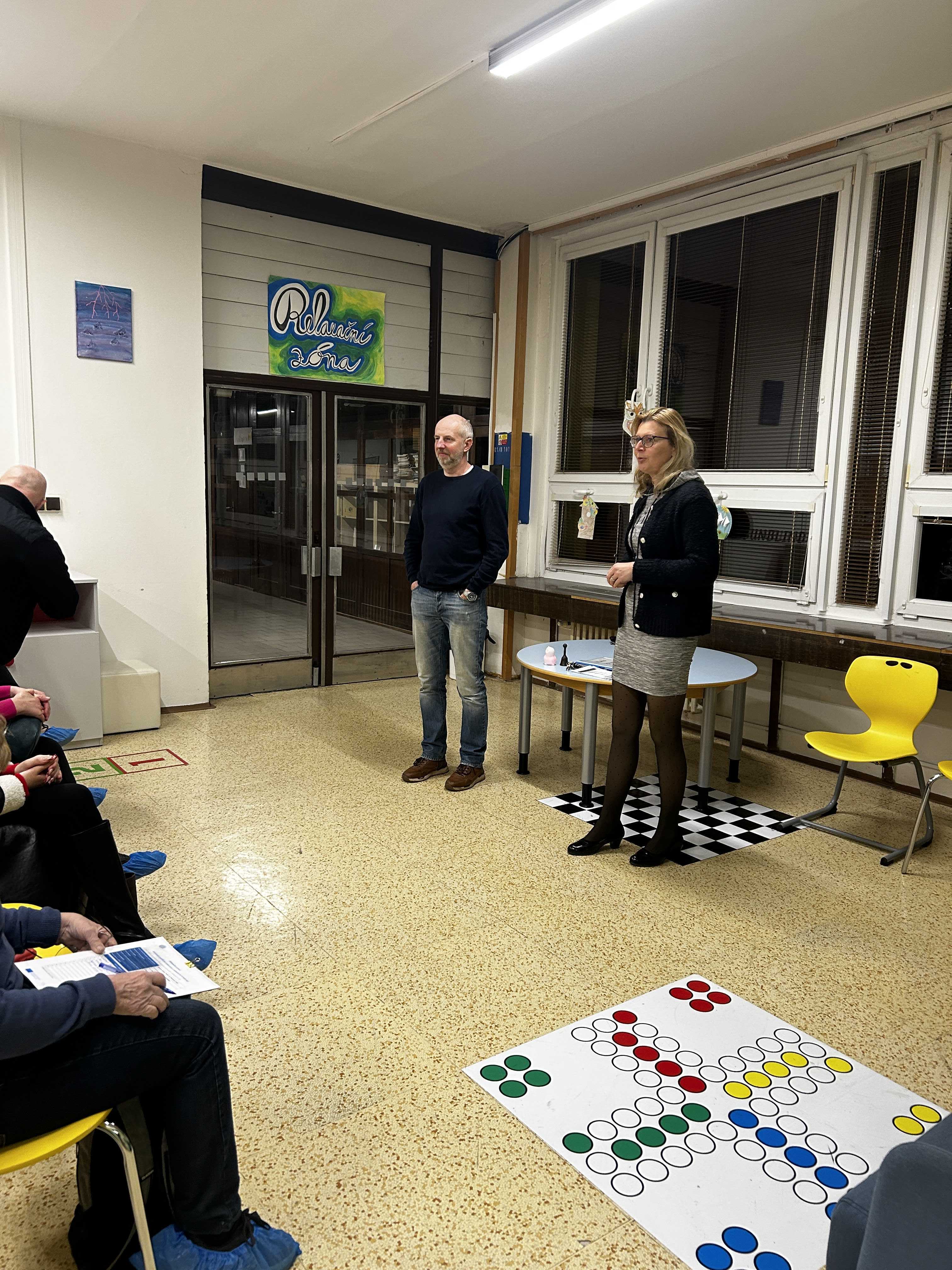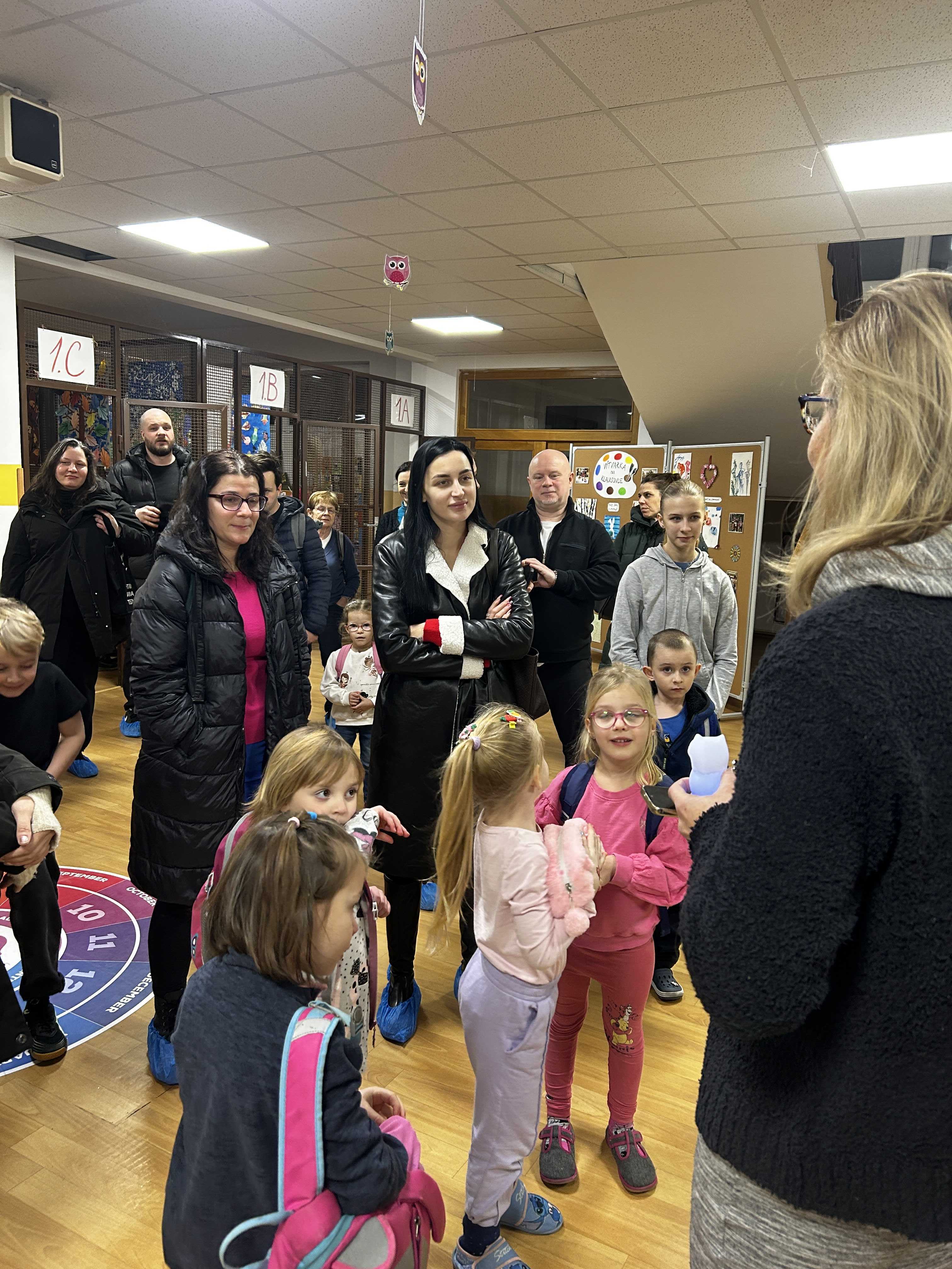 S rodiči si mezitím povídala paní zástupkyně Michaela Šimánková a pan ředitel Petr Neuvirt. Seznámili je se zápisem žáků do prvních tříd, který proběhne 5. 2. 2026 od 13.00 do 18.00 hodin a 6. 2. 2026 od 13.00 do 17.00 hodin. Zaměřili se na formální i motivační stránku zápisu a zmínili také změny v letošním roce týkající se odkladů školní docházky. Rodičům představili vizi školy, která se zaměřuje na diagnostiku a vzdělávání nadaných a mimořádně nadaných žáků. Rodiče rovněž pozvali na Den otevřených dveří, který se uskuteční 27. 1. v dopoledních i odpoledních hodinách.