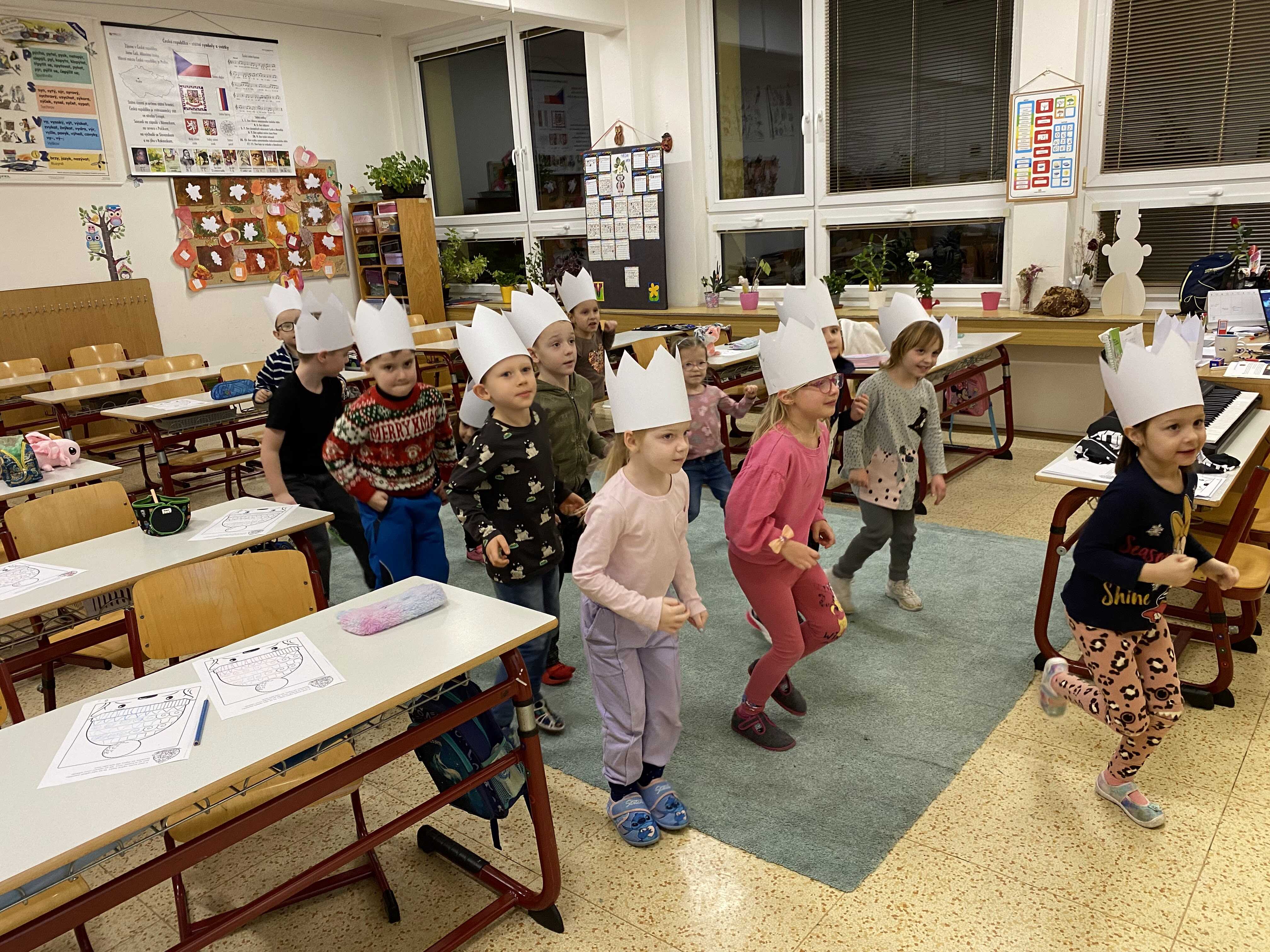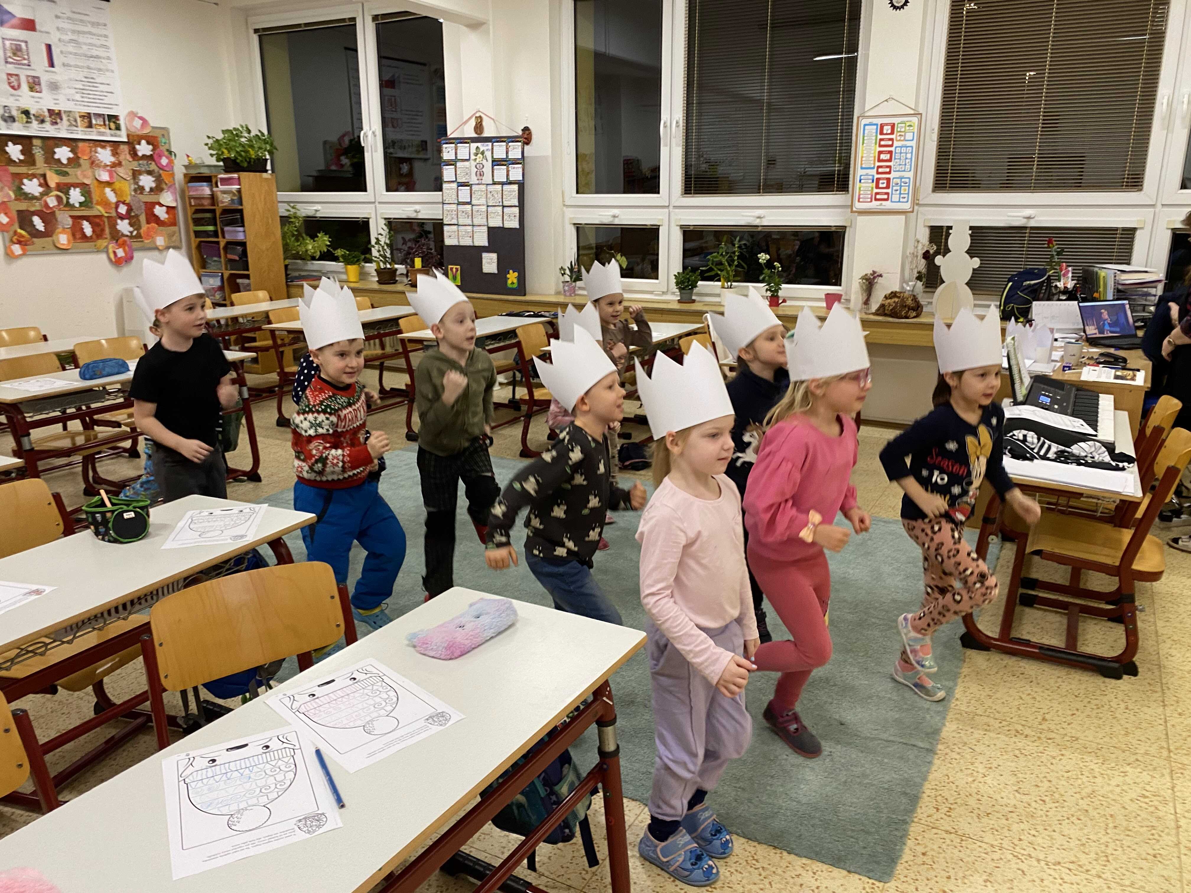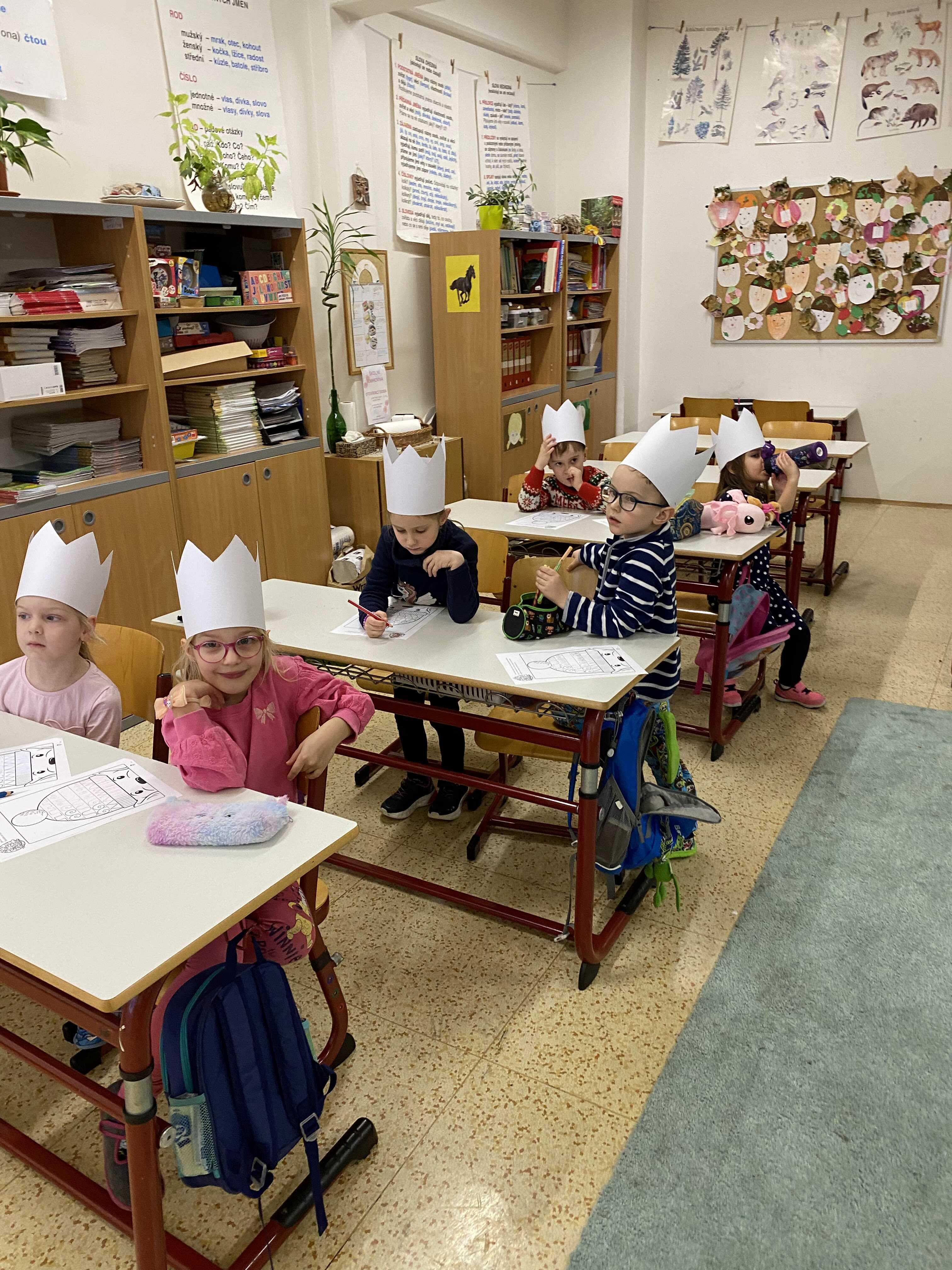 Nastal měsíc leden a v naší školičce s názvem Sovička a písmenka se paní učitelky s dětmi převážně zaměřily na práci s interaktivní tabulí. Procvičovaly zde nejen český jazyk, ale i matematiku, pracovní výchovu a hudební výchovu. Děti si domů odnášely koruny ke Třem králům, sněhuláčky, do jejichž jednotlivých částí umístily písmenka svého jména – výrobky, které si společně během školičky vyrobily.