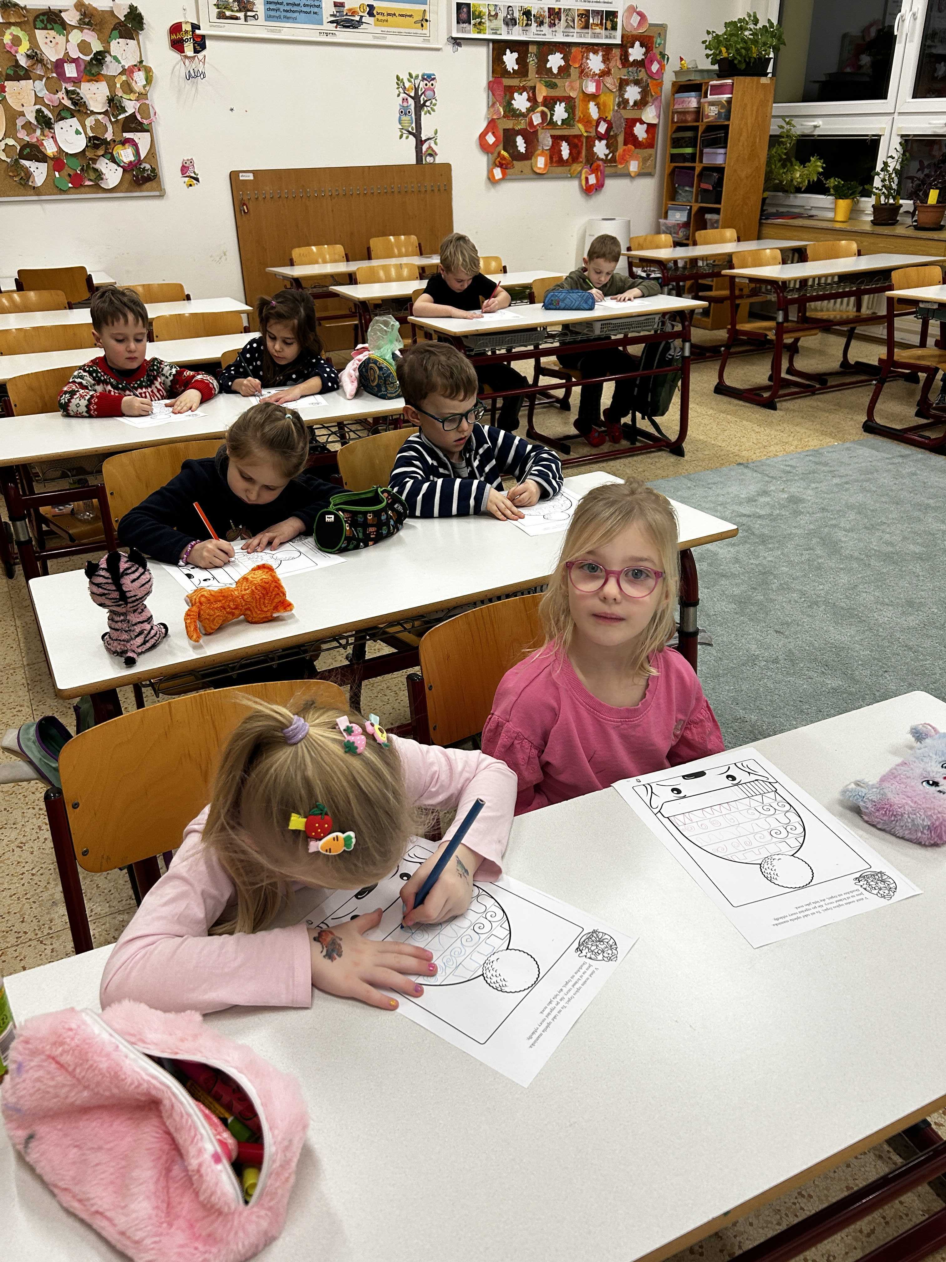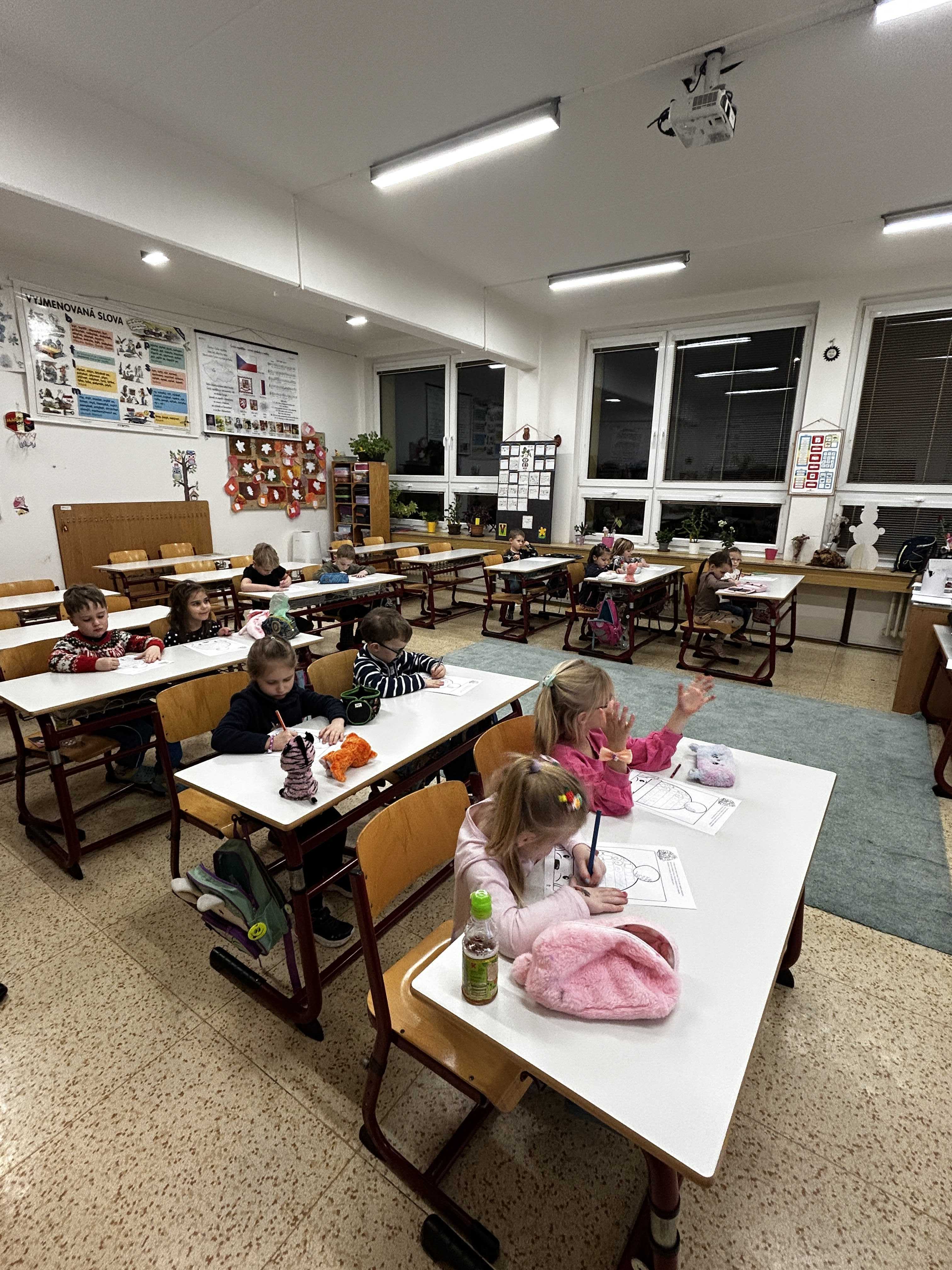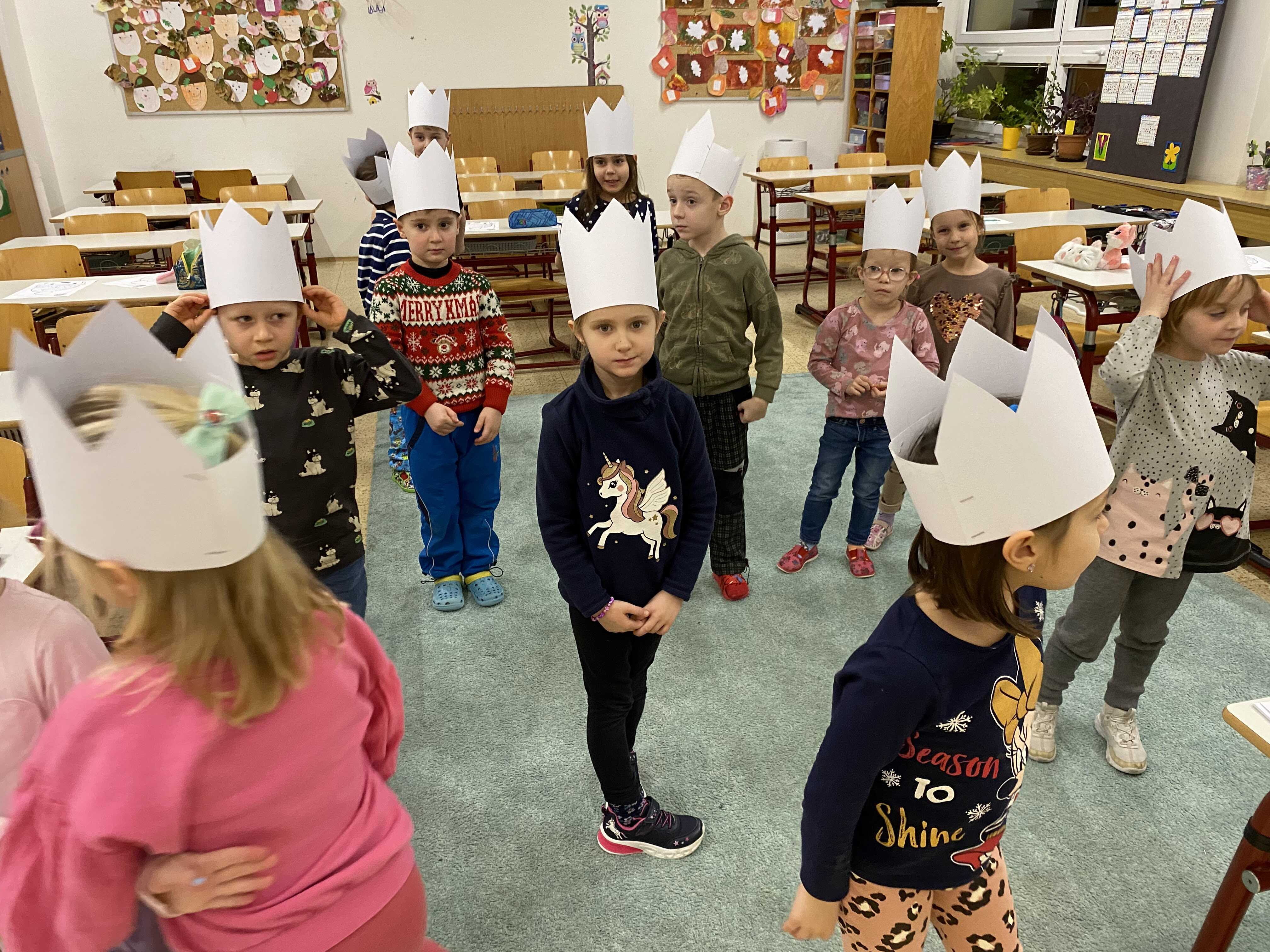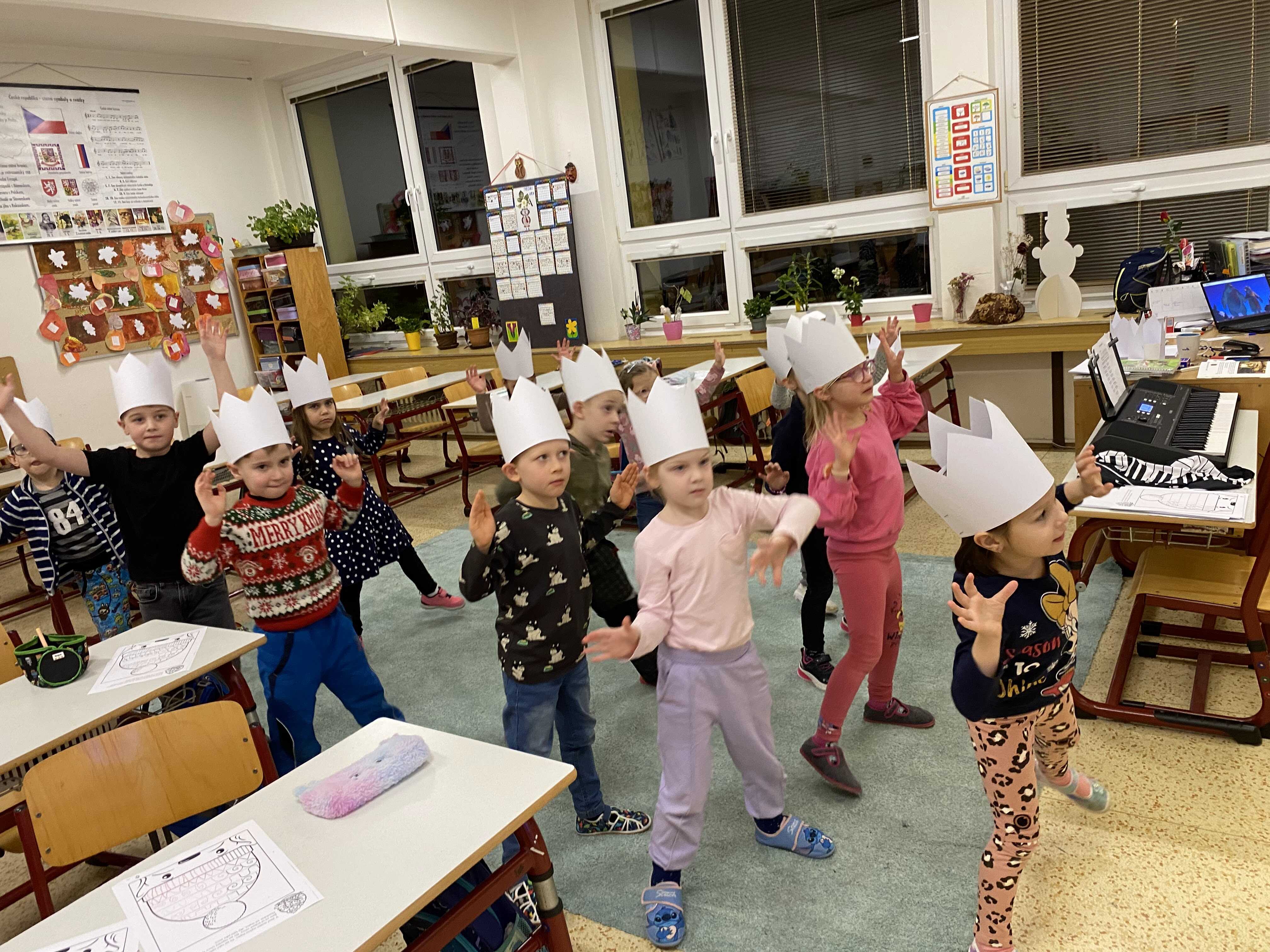 Nastal měsíc leden a v naší školičce s názvem Sovička a písmenka se paní učitelky s dětmi převážně zaměřily na práci s interaktivní tabulí. Procvičovaly zde nejen český jazyk, ale i matematiku, pracovní výchovu a hudební výchovu. Děti si domů odnášely koruny ke Třem králům, sněhuláčky, do jejichž jednotlivých částí umístily písmenka svého jména – výrobky, které si společně během školičky vyrobily.