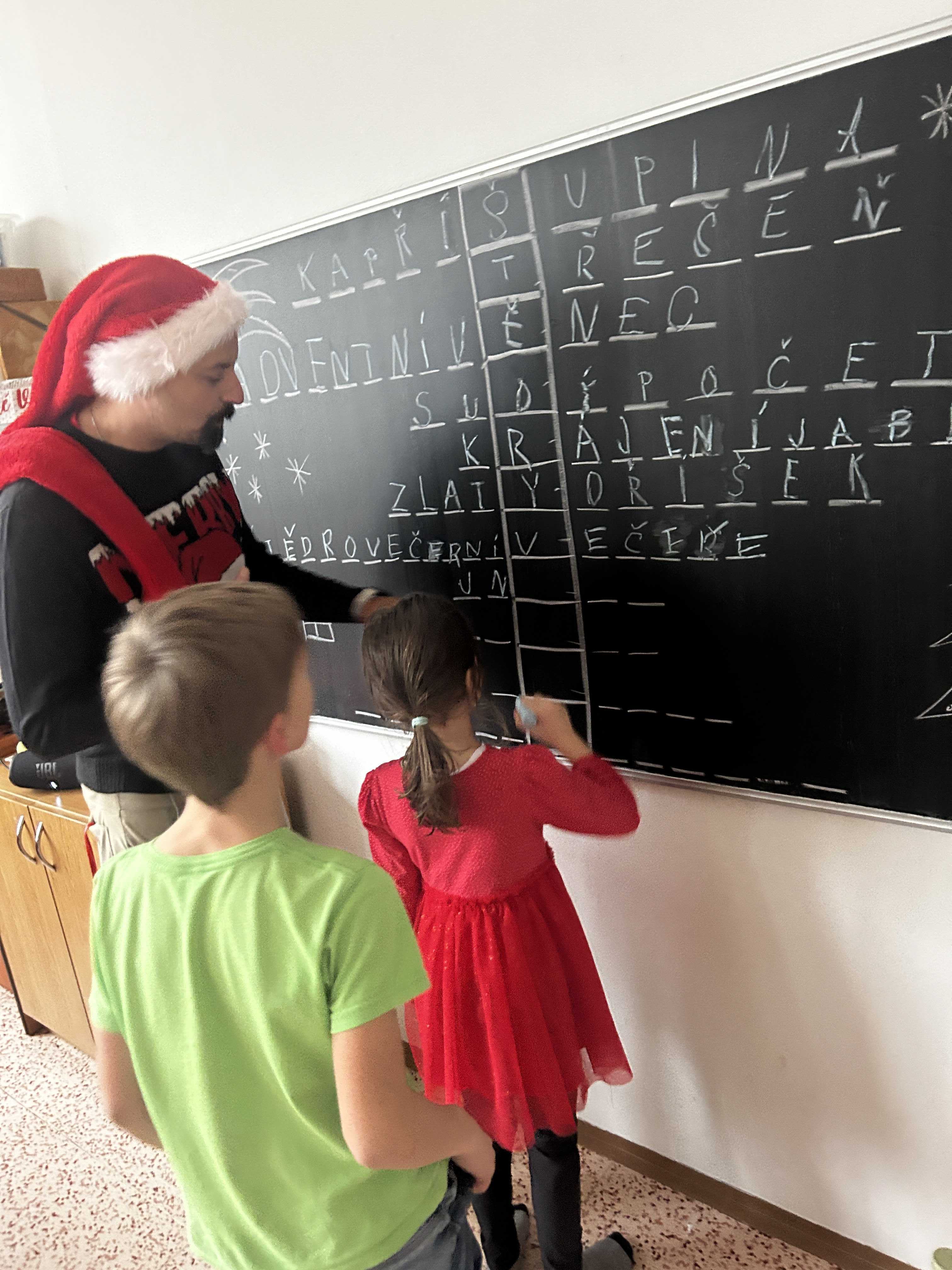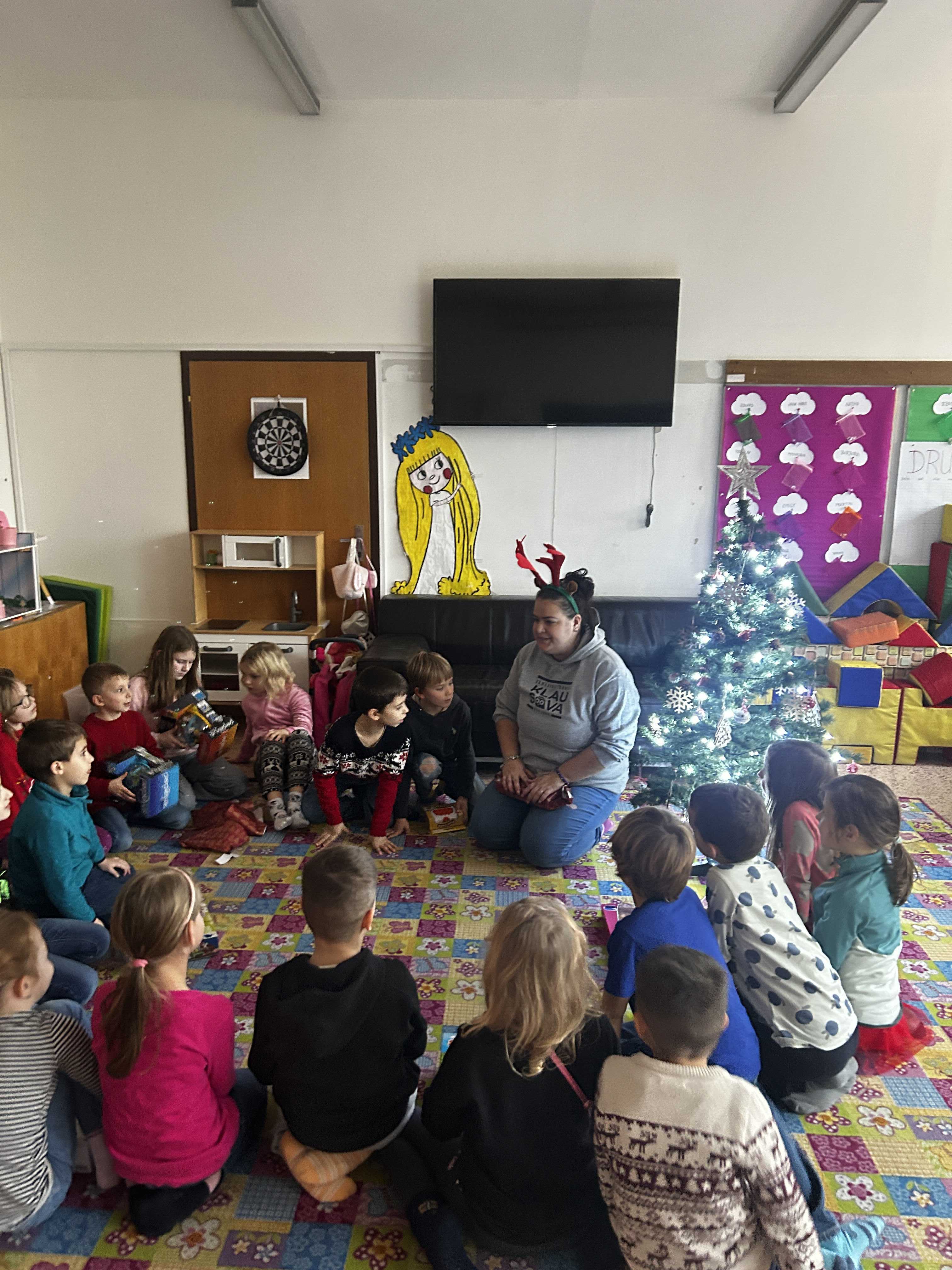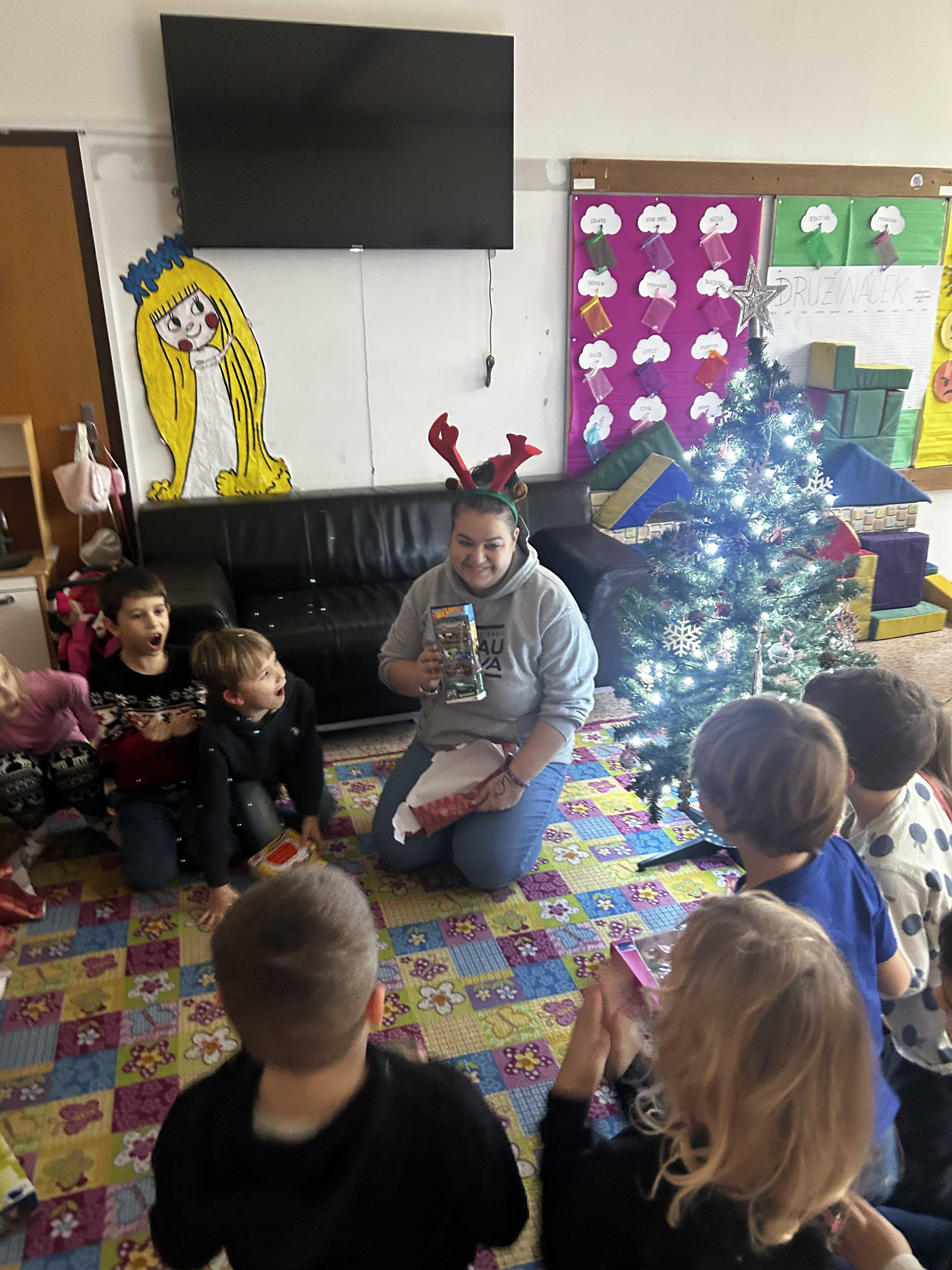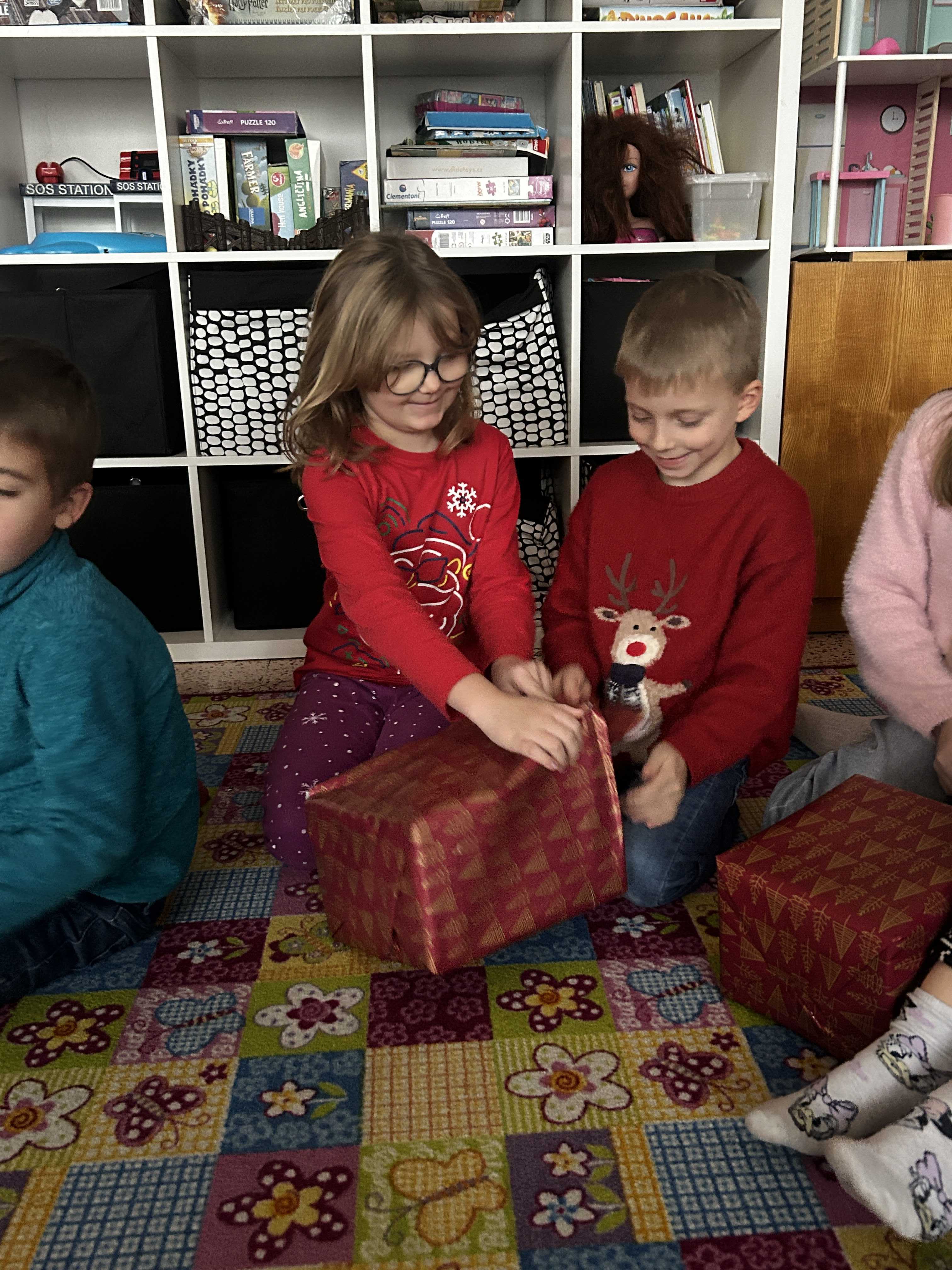 Poté se všichni vydali hledat Ježíška po škole. Na různých místech společně zpívali vánoční koledy a s napětím očekávali, kde se objeví další stopa. Nakonec přišlo to největší překvapení – v odděleních školní družiny na děti čekaly vánoční dárečky, které vykouzlily úsměvy na tvářích a radost v dětských očích.