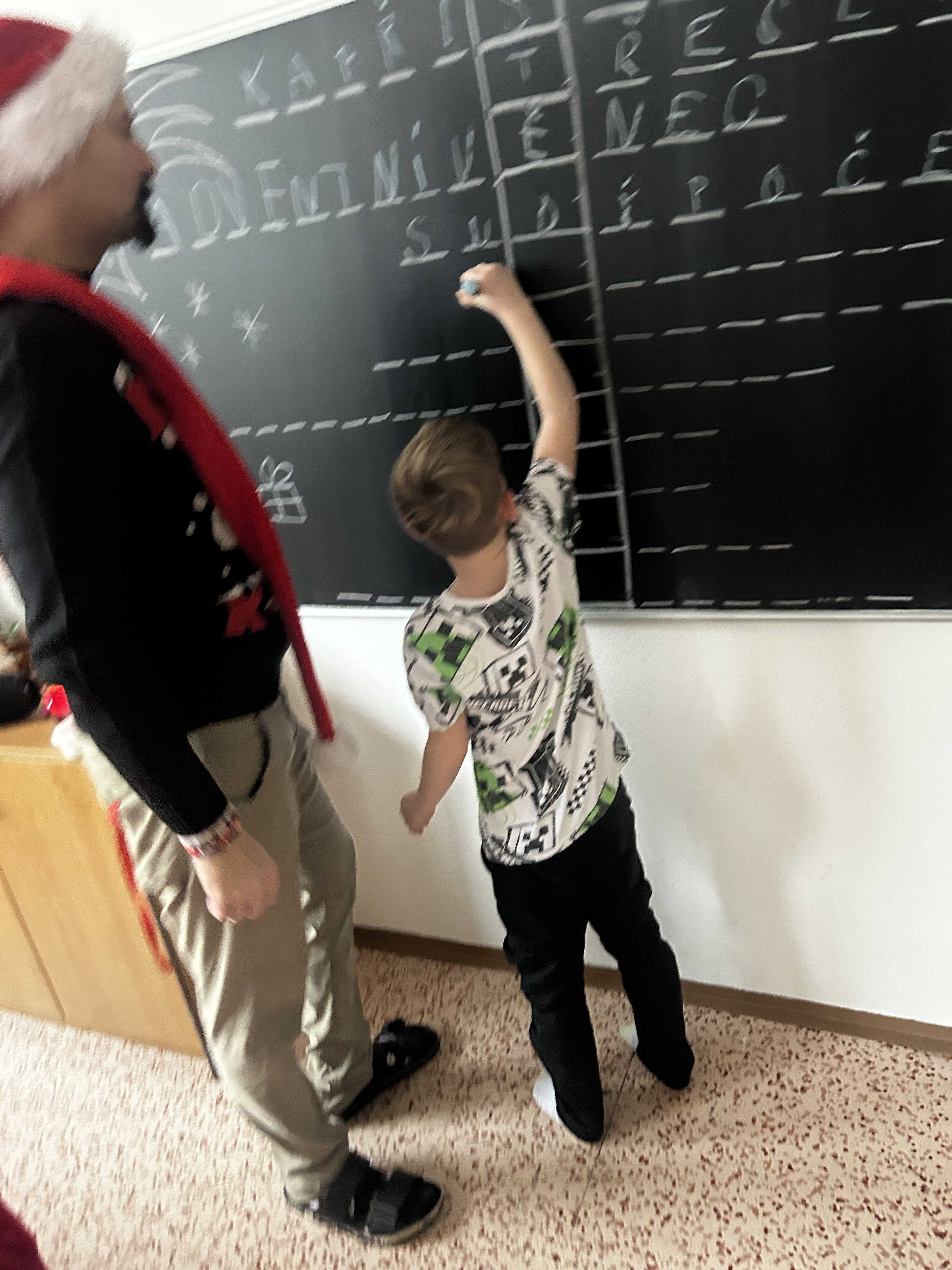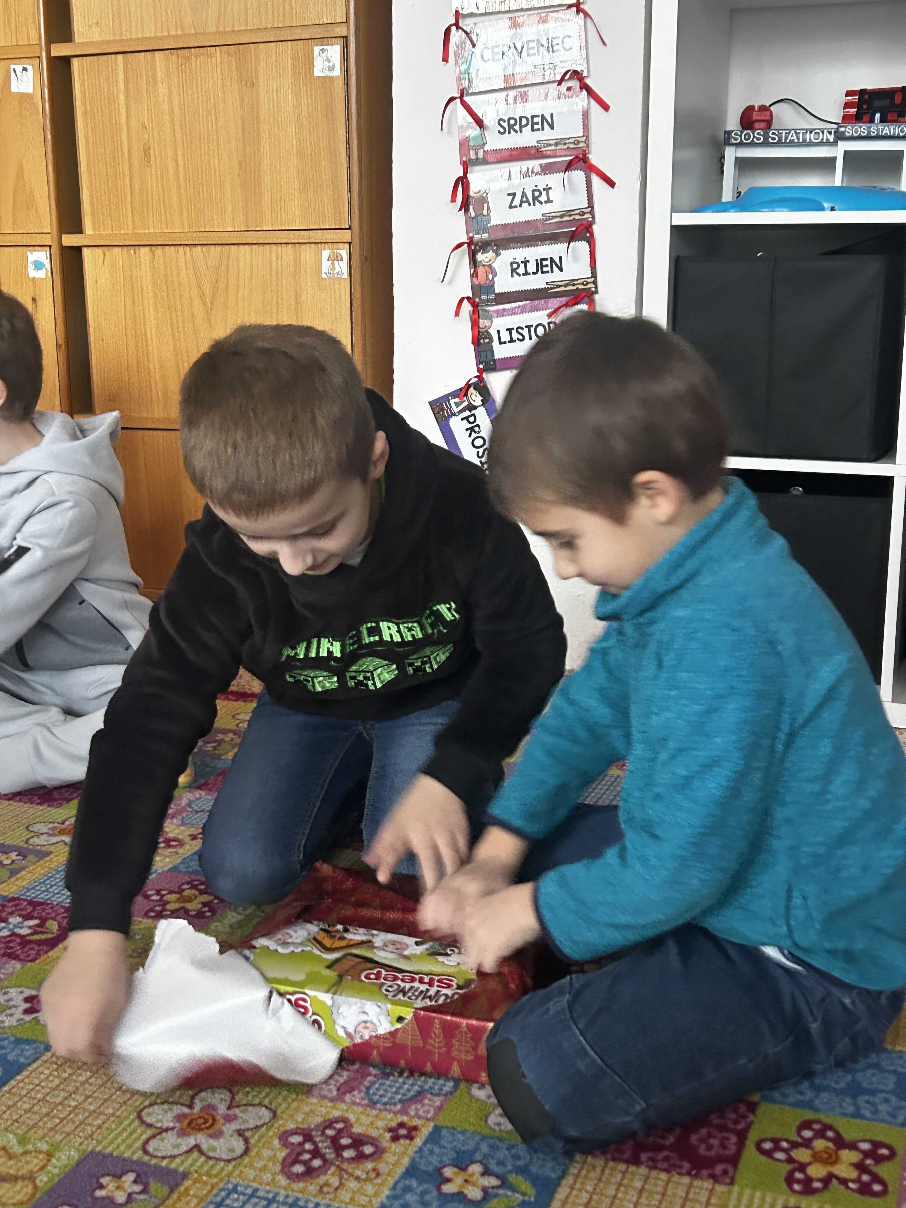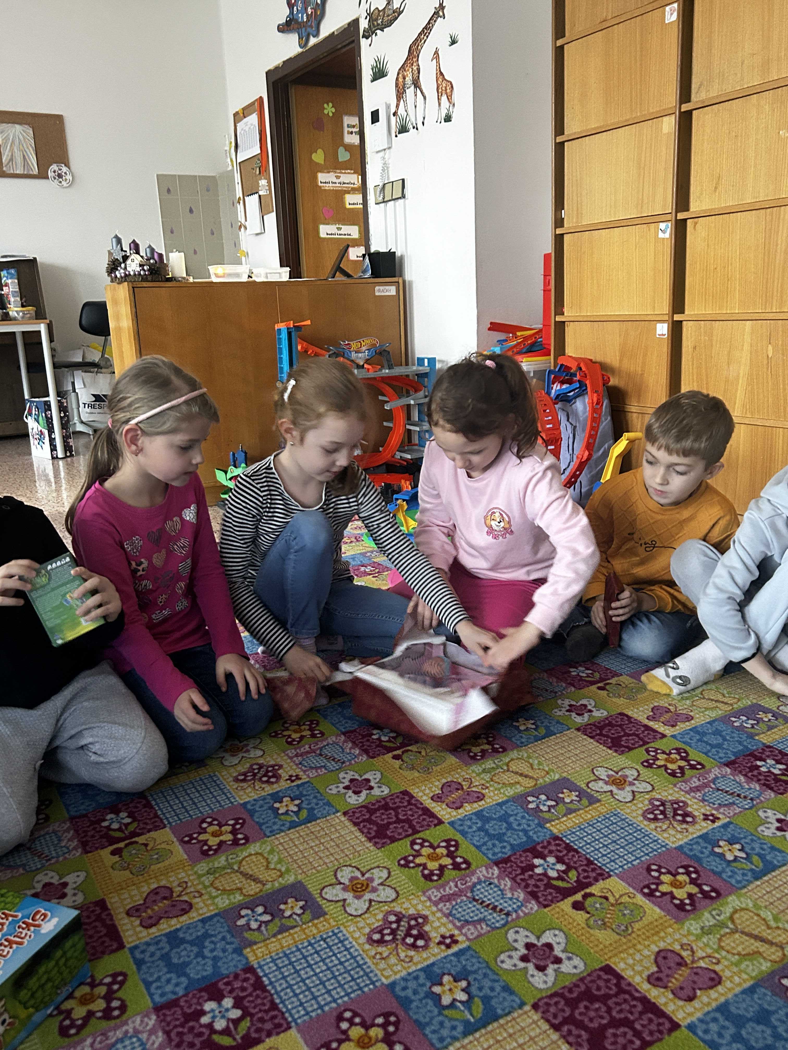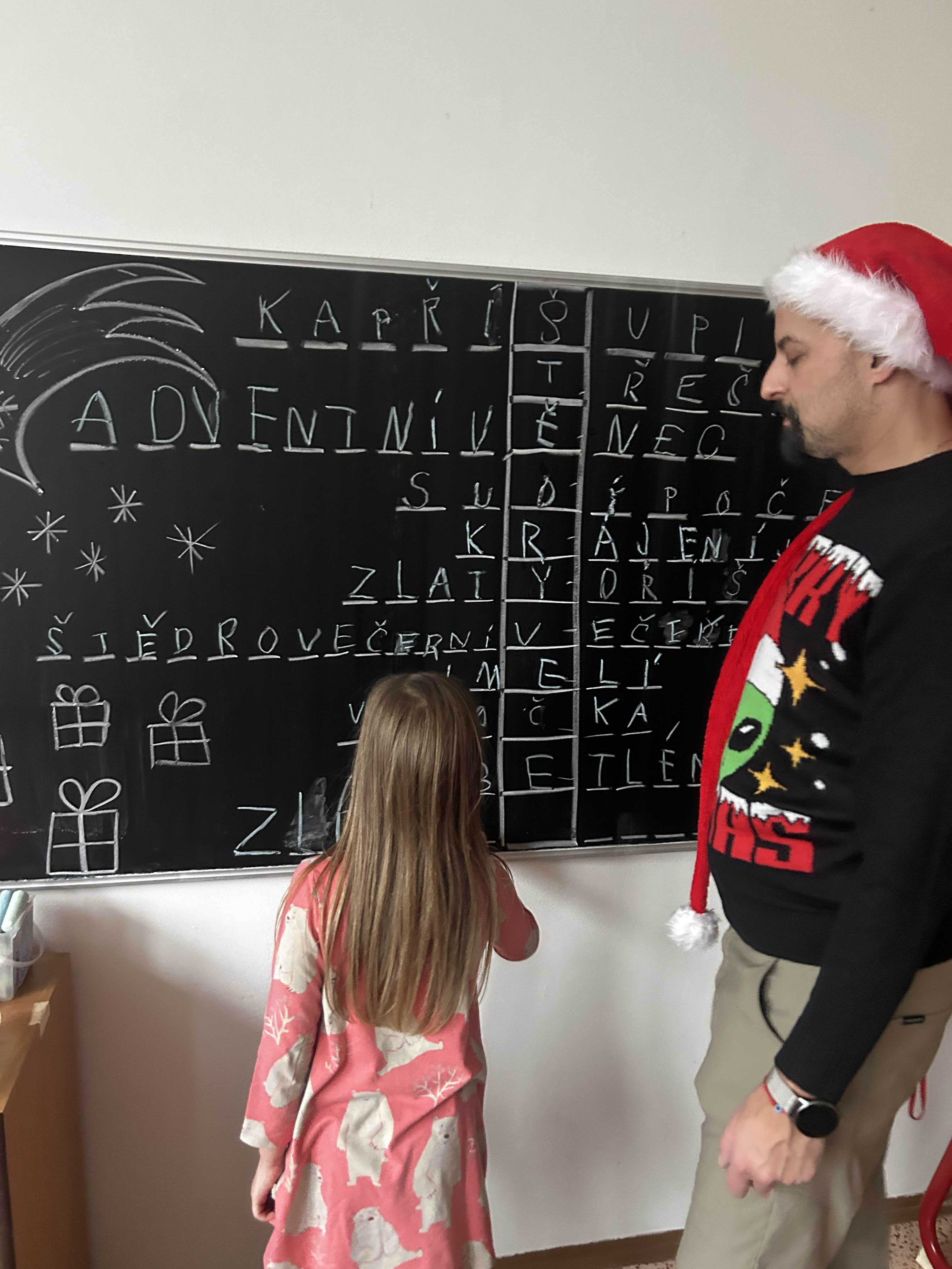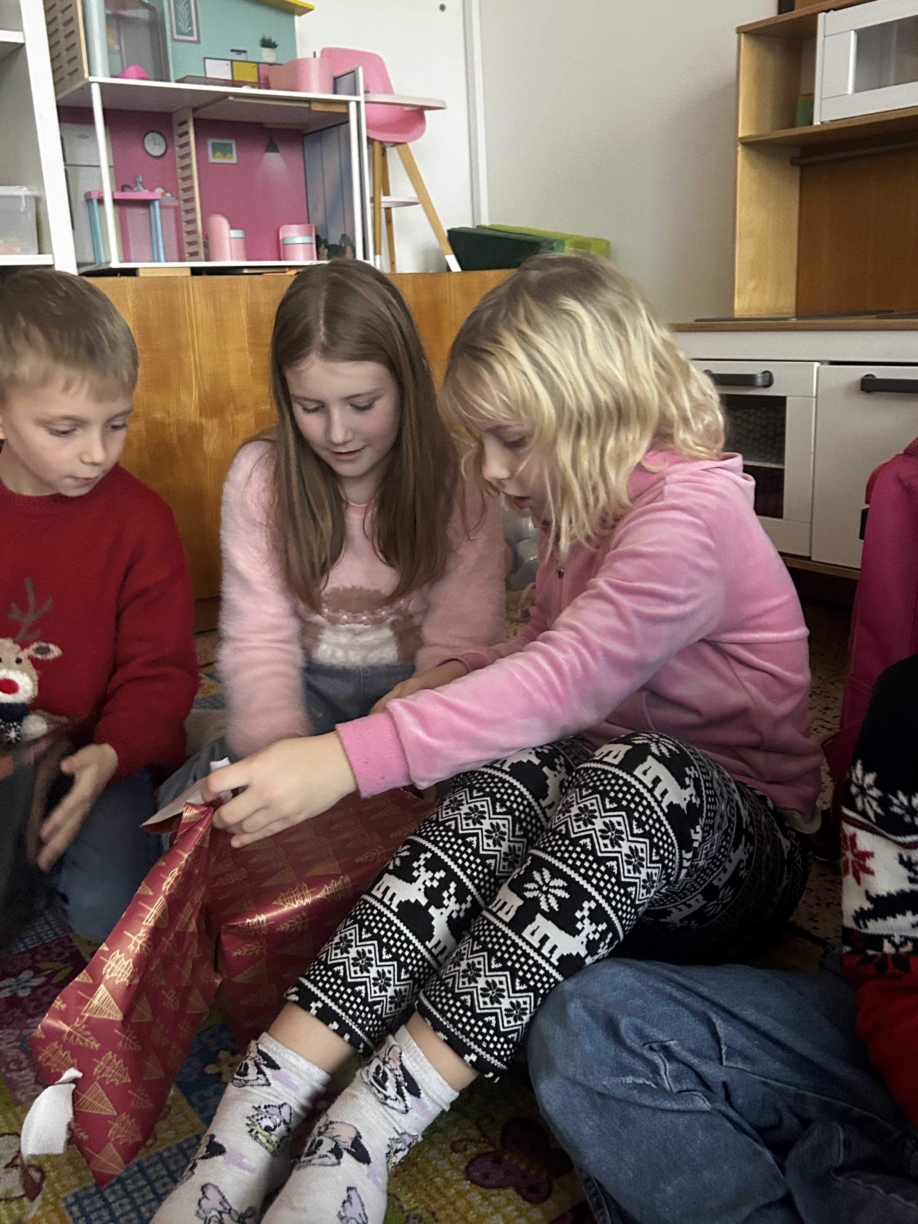 Poté se všichni vydali hledat Ježíška po škole. Na různých místech společně zpívali vánoční koledy a s napětím očekávali, kde se objeví další stopa. Nakonec přišlo to největší překvapení – v odděleních školní družiny na děti čekaly vánoční dárečky, které vykouzlily úsměvy na tvářích a radost v dětských očích.