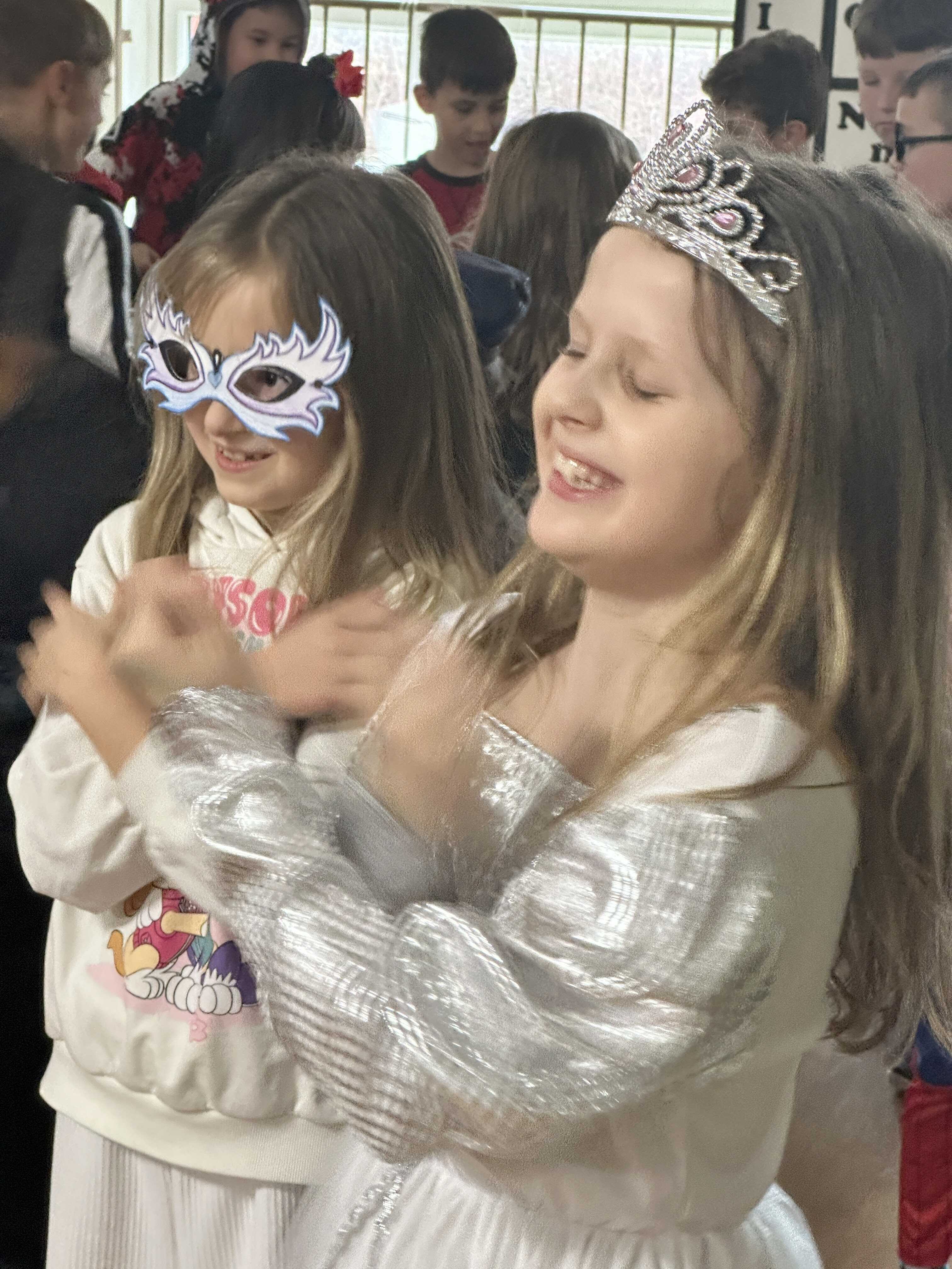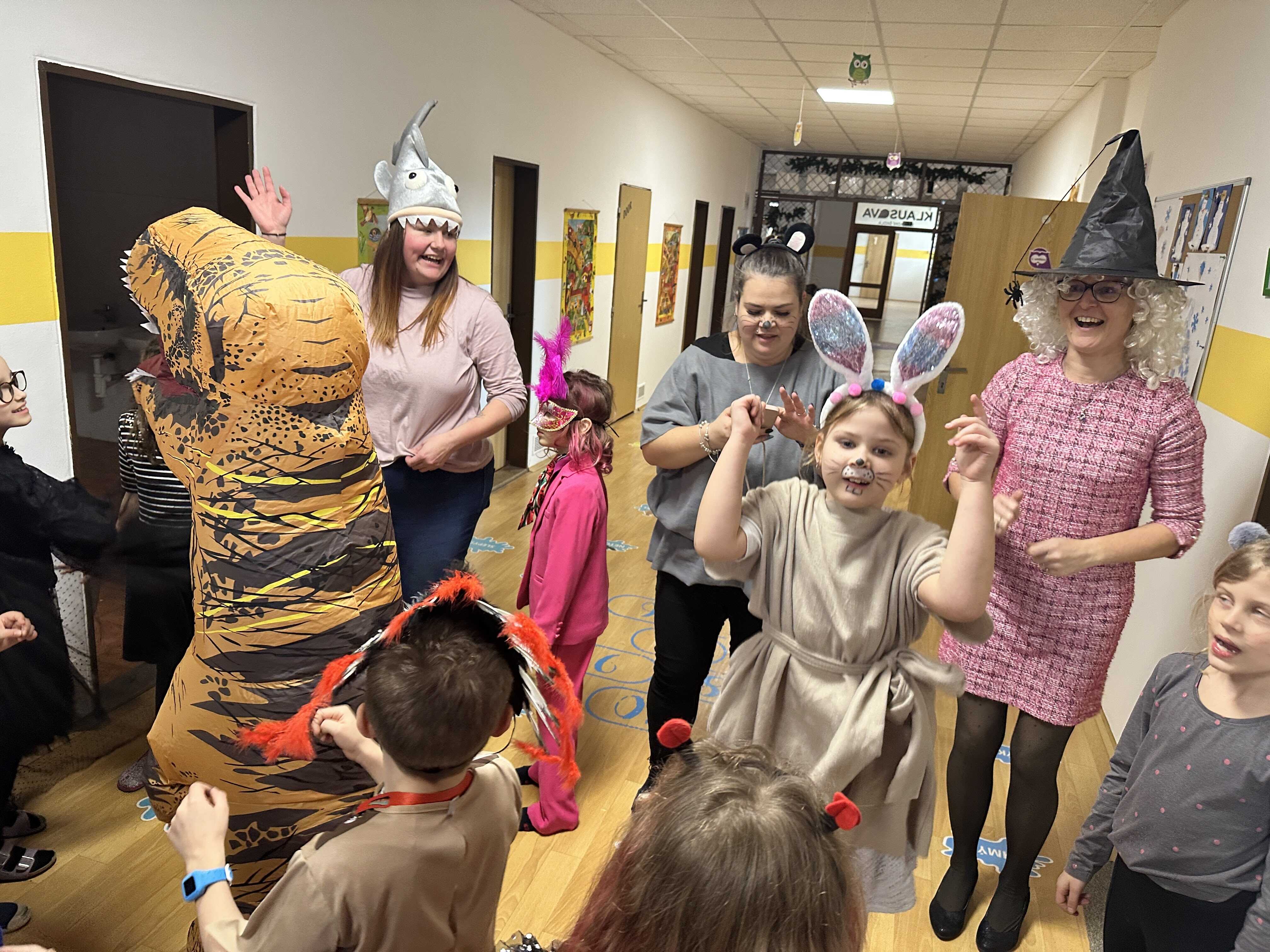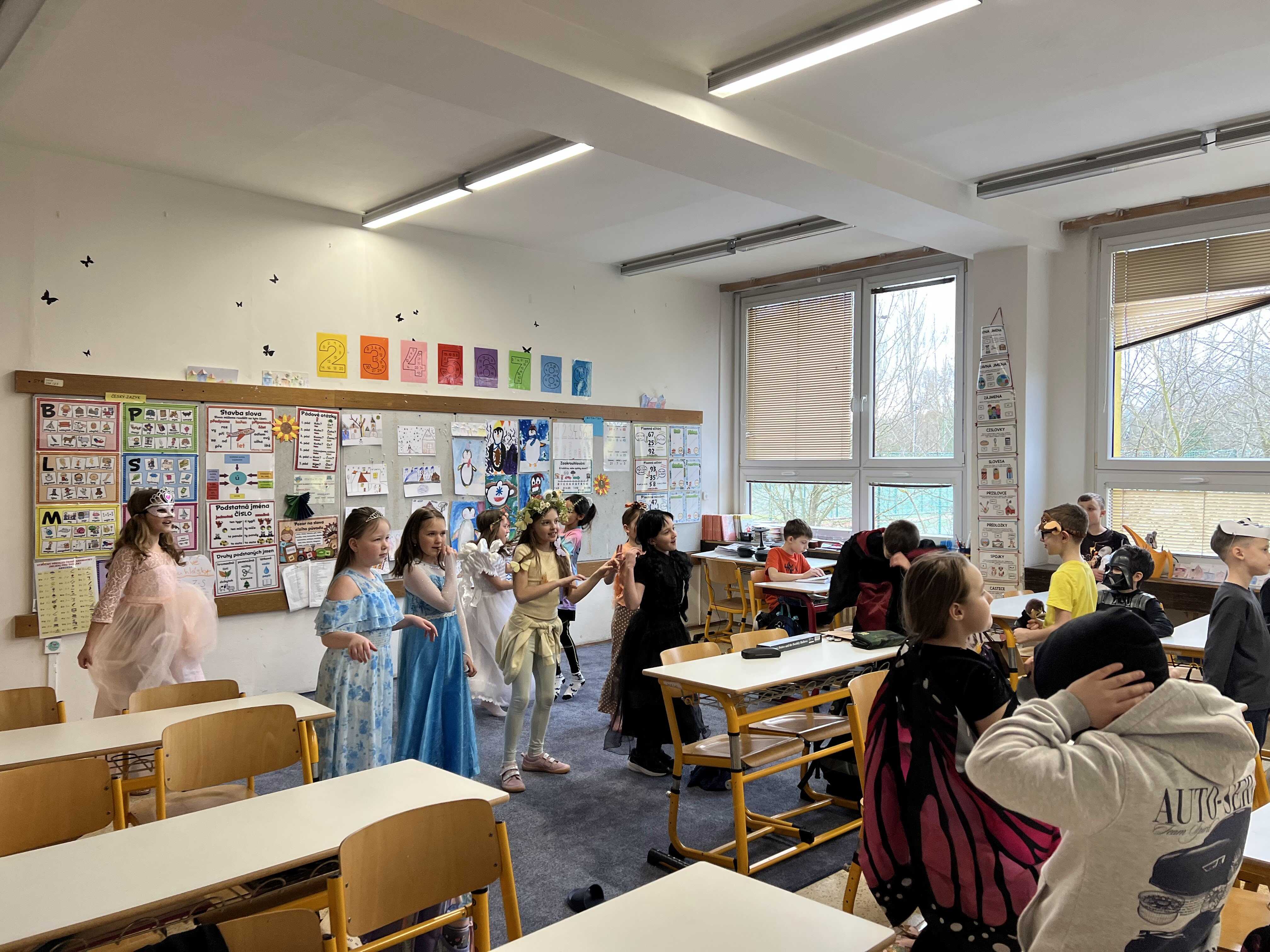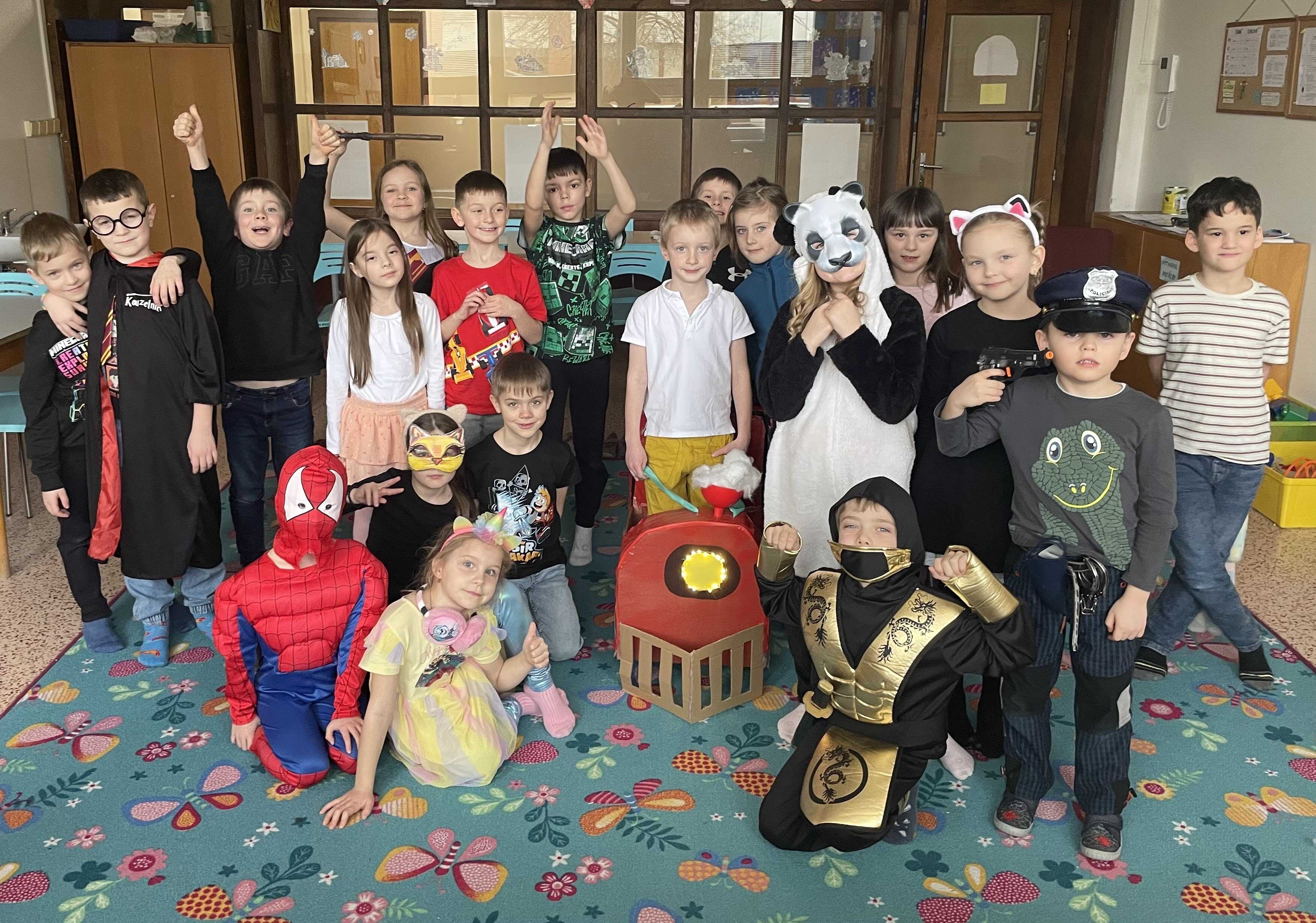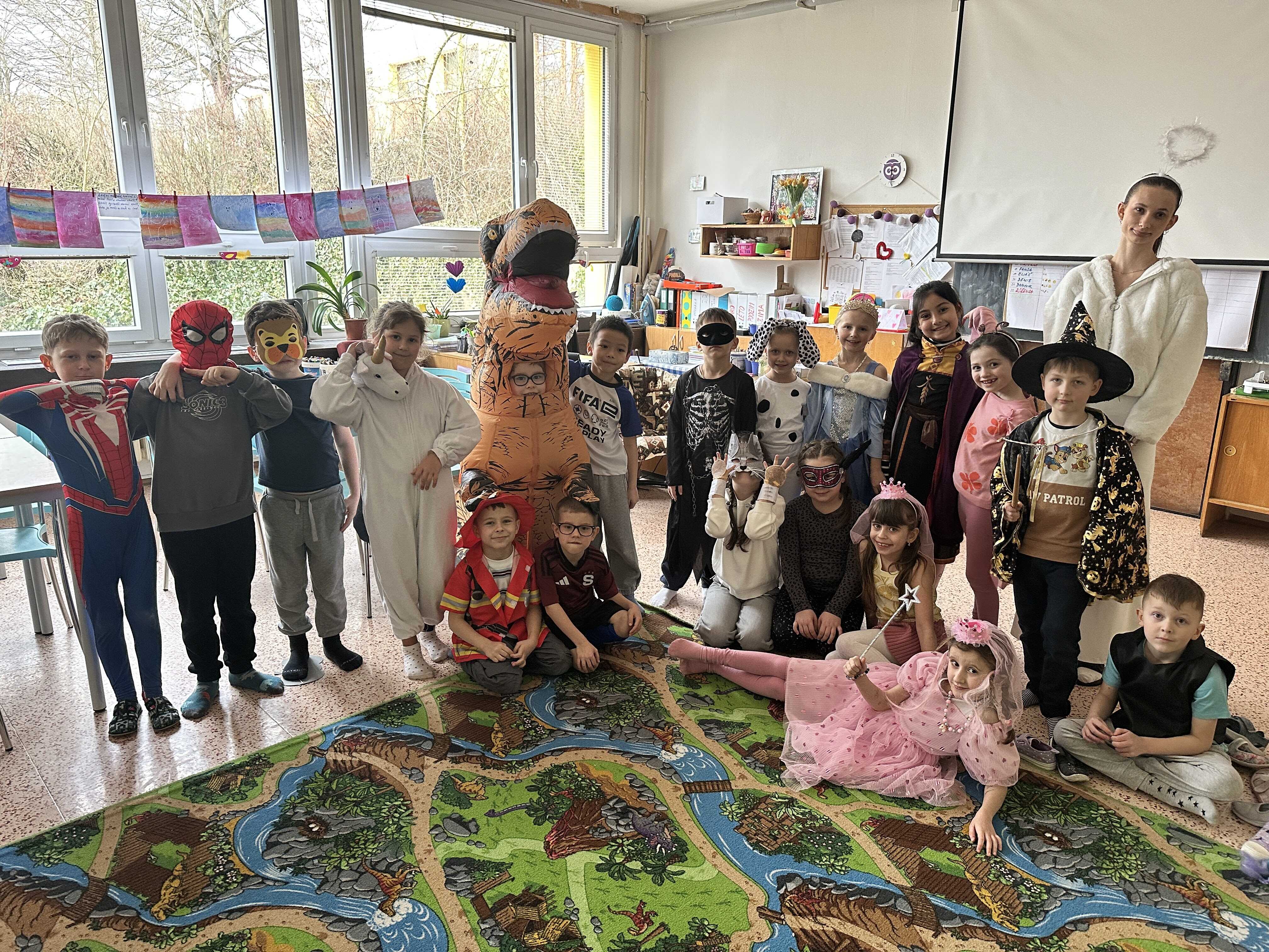 Masopustní karneval 24. února rozzářil nejen naši družinu, ale i celý první stupeň. Chodby se proměnily v barevný průvod masek – potkávali jsme princezny, zvířátka, superhrdiny, sportovce, pohádkové bytosti i nejrůznější originální nápady, nad kterými zůstával rozum stát. A pozadu nezůstali ani naši vychovatelé – i ti dnes odložili svou „běžnou podobu“ a s radostí se přidali do víru masek a smíchu.
