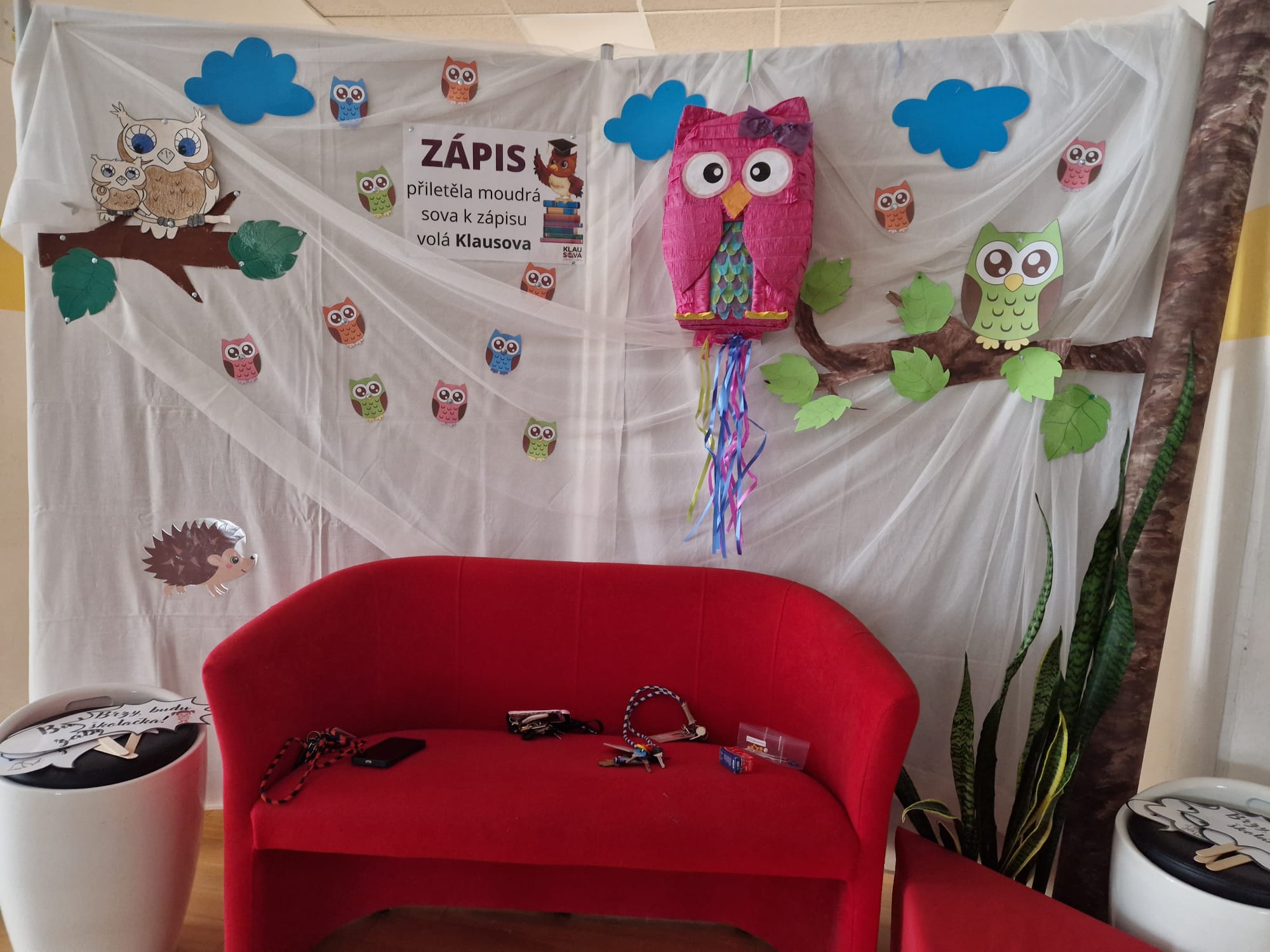 Součástí zápisu byl také fotokoutek, kde se děti mohly vyfotit se školní maskotkou Sovičkou a odnést si tak milou památku na svůj zápis do školy.