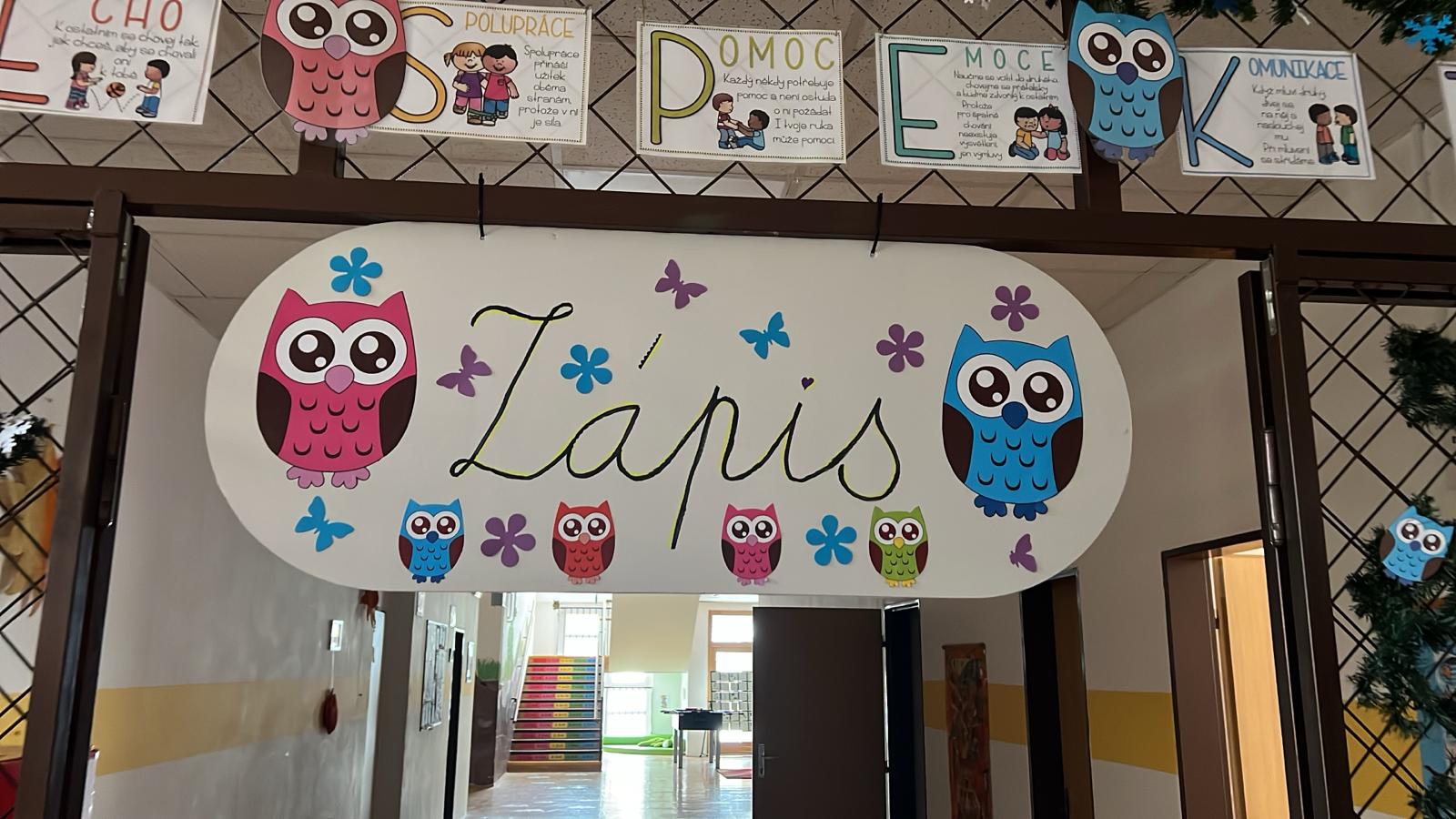 Celým zápisem děti symbolicky provázela sova, která je nejen moudrým průvodcem, ale také součástí znaku školy. V jednotlivých třídách na děti čekala soví hnízda s úkoly, ve kterých si vyzkoušely své dovednosti – kreslení, počítání, poznávání barev či tvarů. Děti se do plnění úkolů zapojovaly s nadšením a radostí.